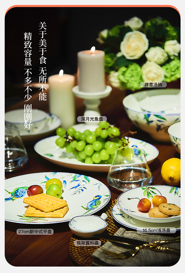 【6F】玛戈隆特 碗碟套装家用创意个性中式网红高端骨瓷餐具套装 礼盒装