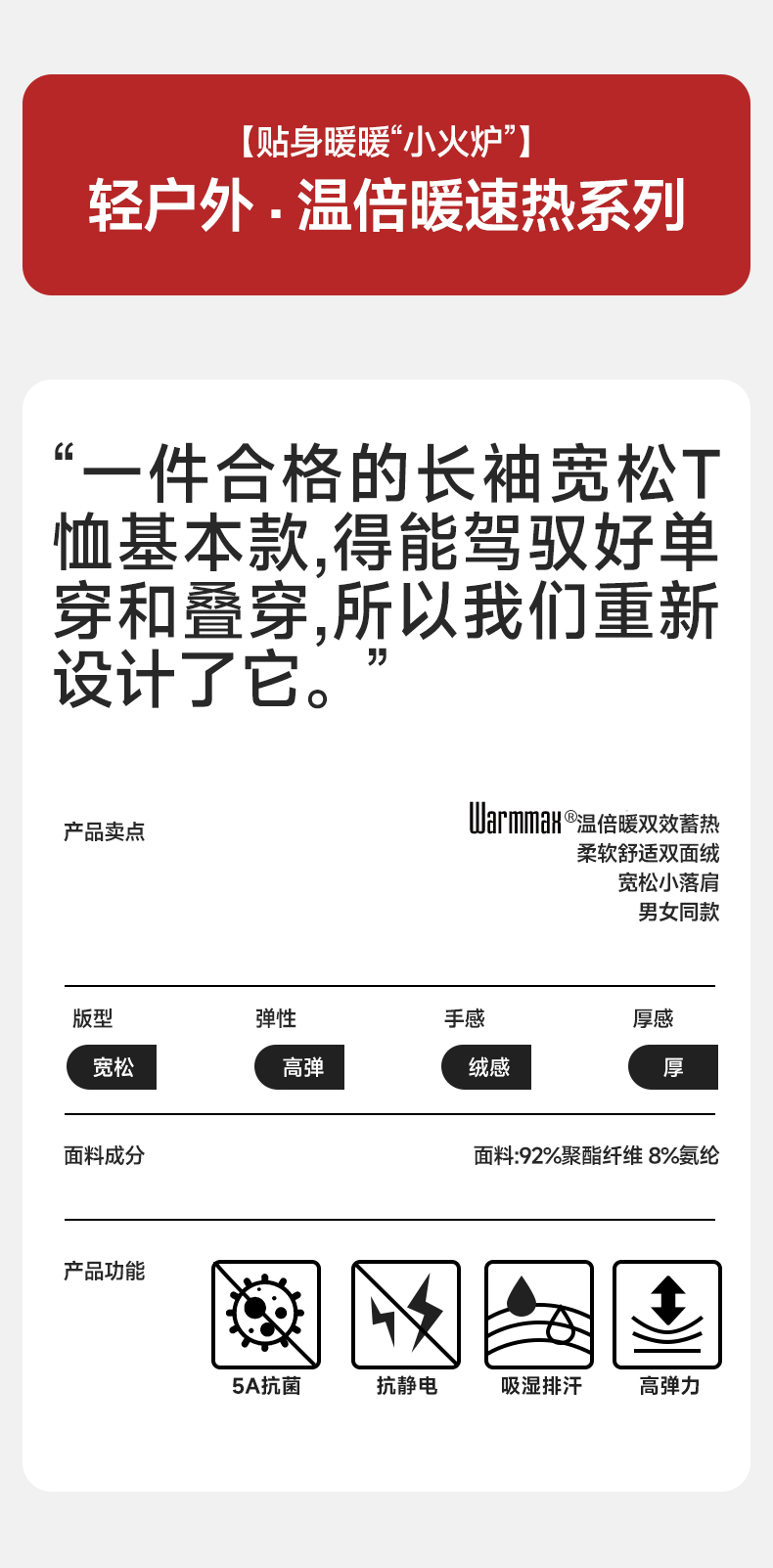 宽松款/修身显瘦款【贴身暖暖“小火炉”】素湃 情侣款温倍暖打底衫5336/5319 锁温蓄热 吸湿排汗 舒适软糯