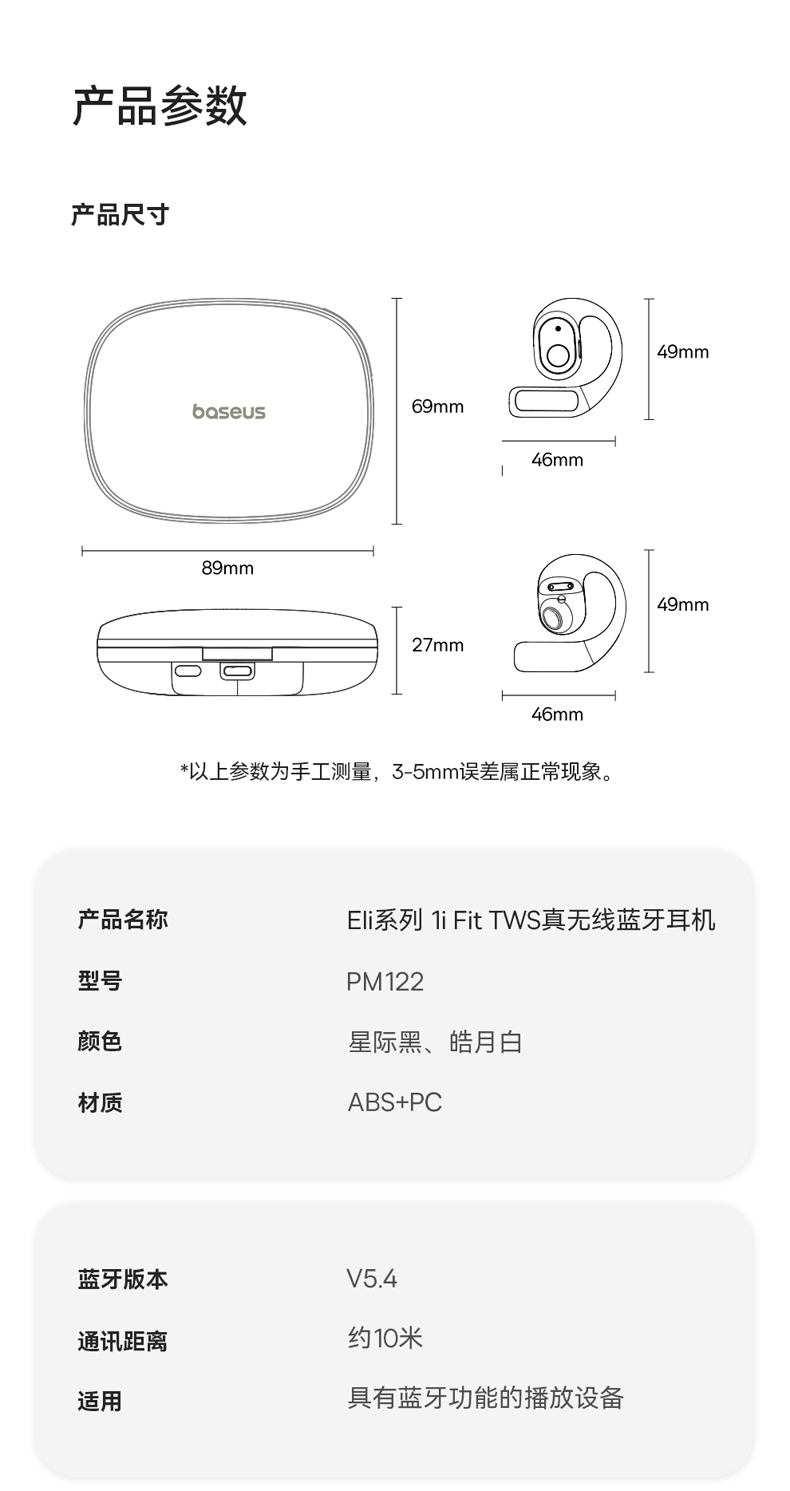 倍思 Eli系列 1i Fit 开放式真无线蓝牙耳机