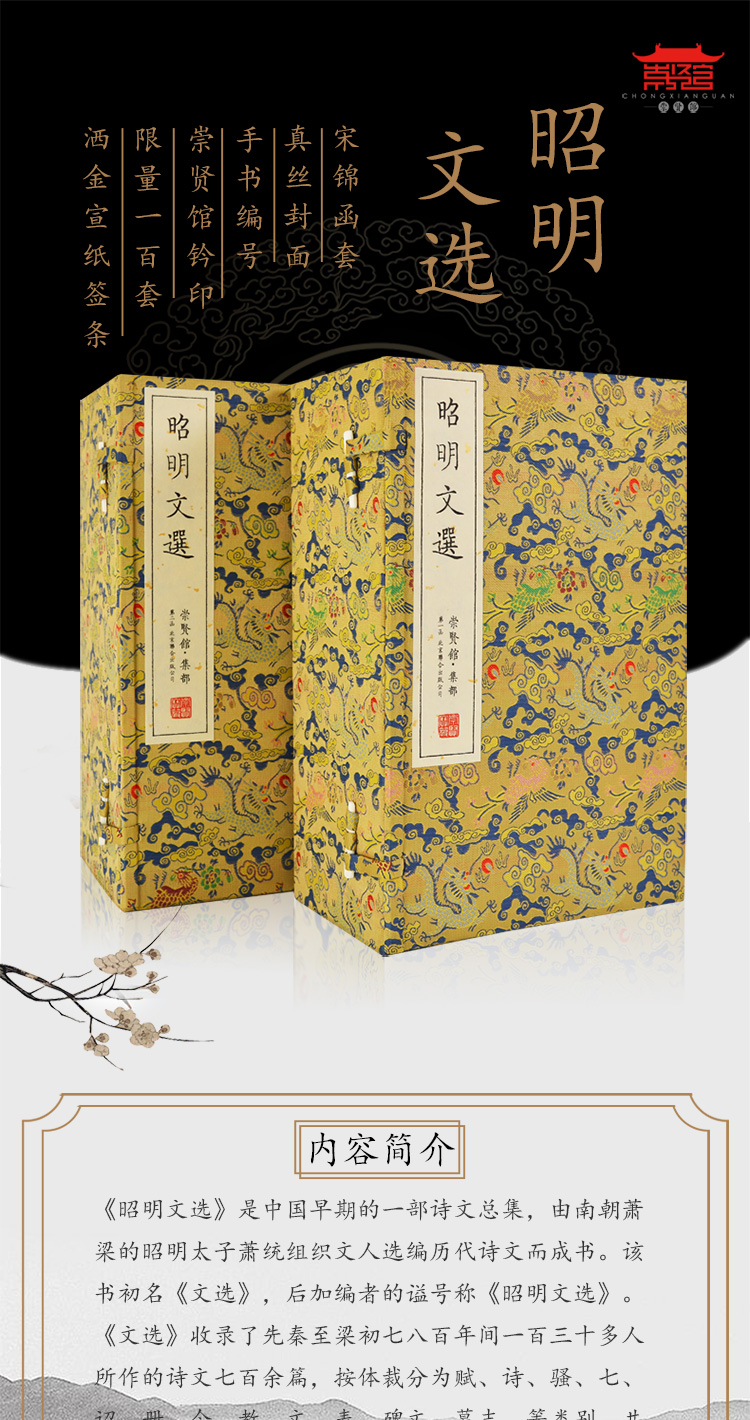 【崇贤宝笈】《昭明文选》嘉庆14年胡克家刻本(2函17册)手工宣纸线装 限量100套收藏版
