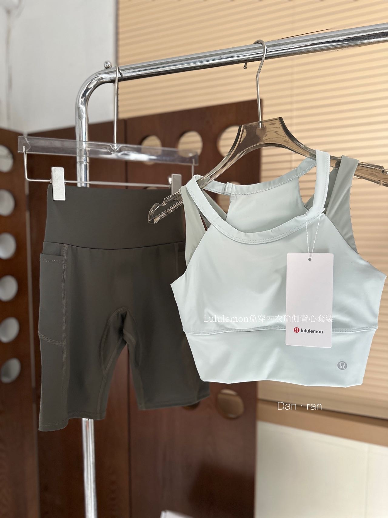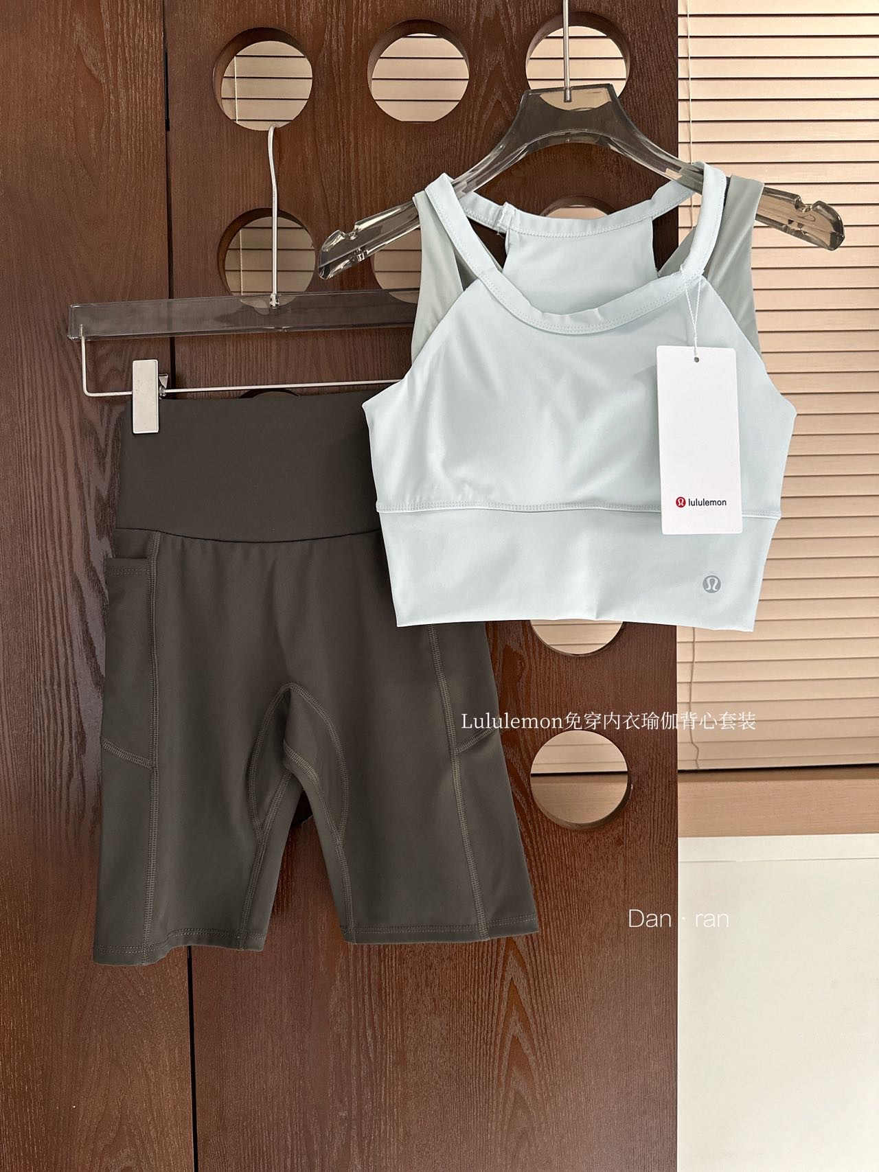 春意藏不住的奶绿色系搭配橄榄绿四分裤,整套的颜色非常协调好看,而且巨显白。