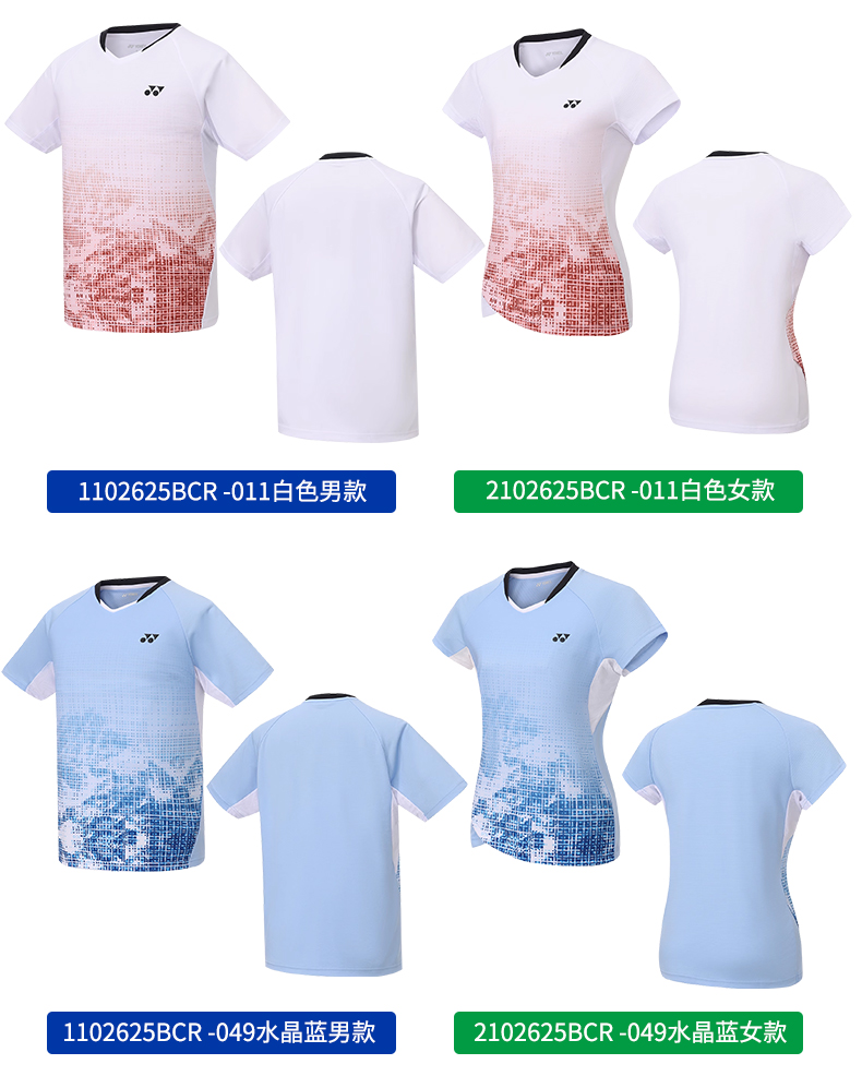 YONEX尤尼克斯羽毛球服短袖1102625BCR 2102625BCR男女款透气速干比赛运动服短袖