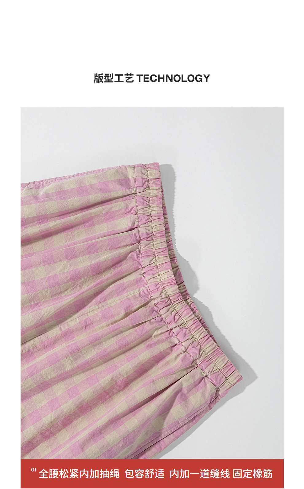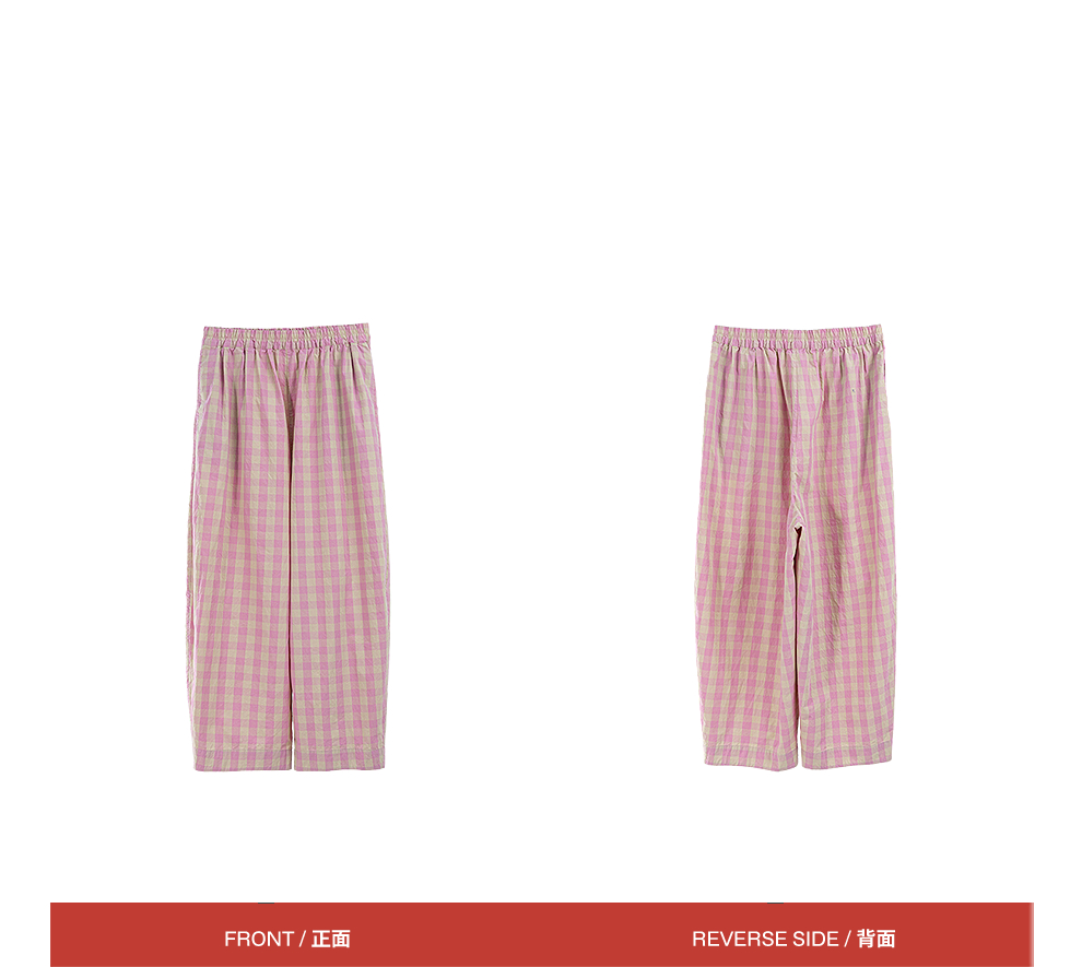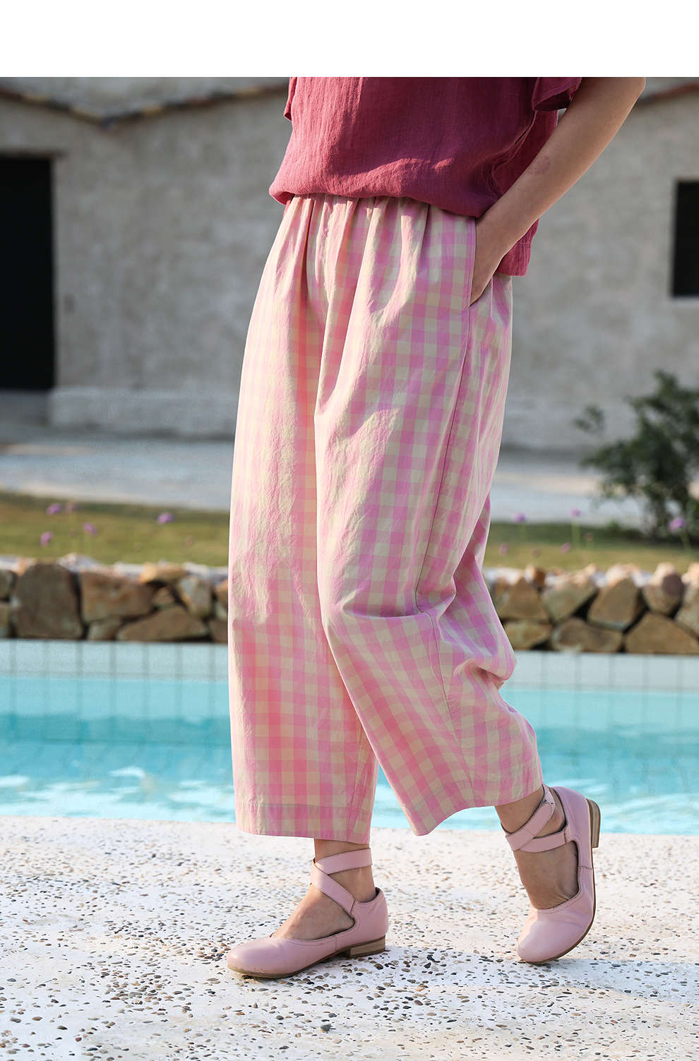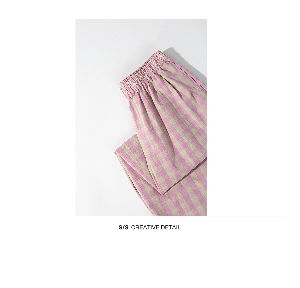 绽放旅行女装250朵/日本进口高密纱线色织格全腰松紧九分裤休闲裤