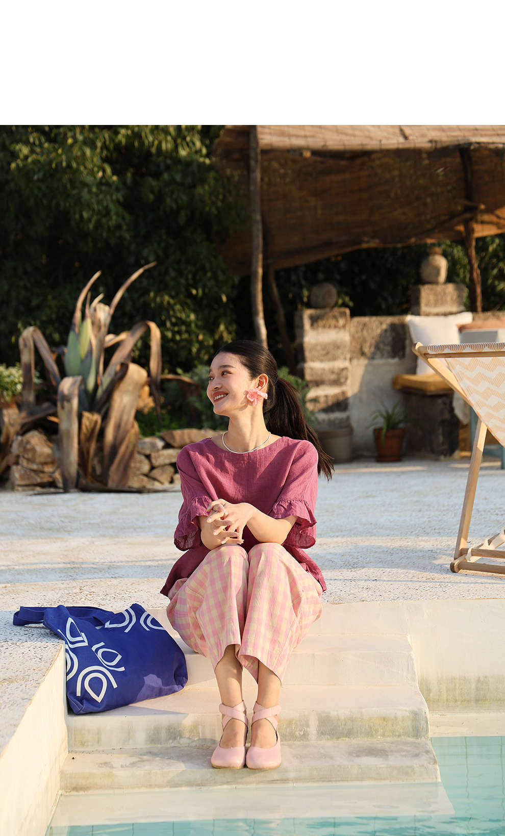 以天然亚麻为载体,融合热烈色彩与自在剪裁为身在城市、心怀远方的女性提供兼具美学与舒适的旅行着装