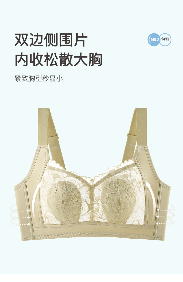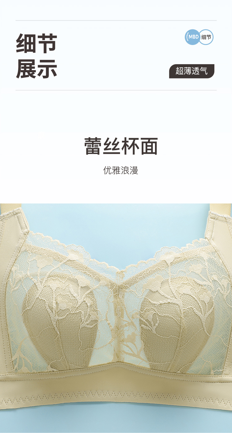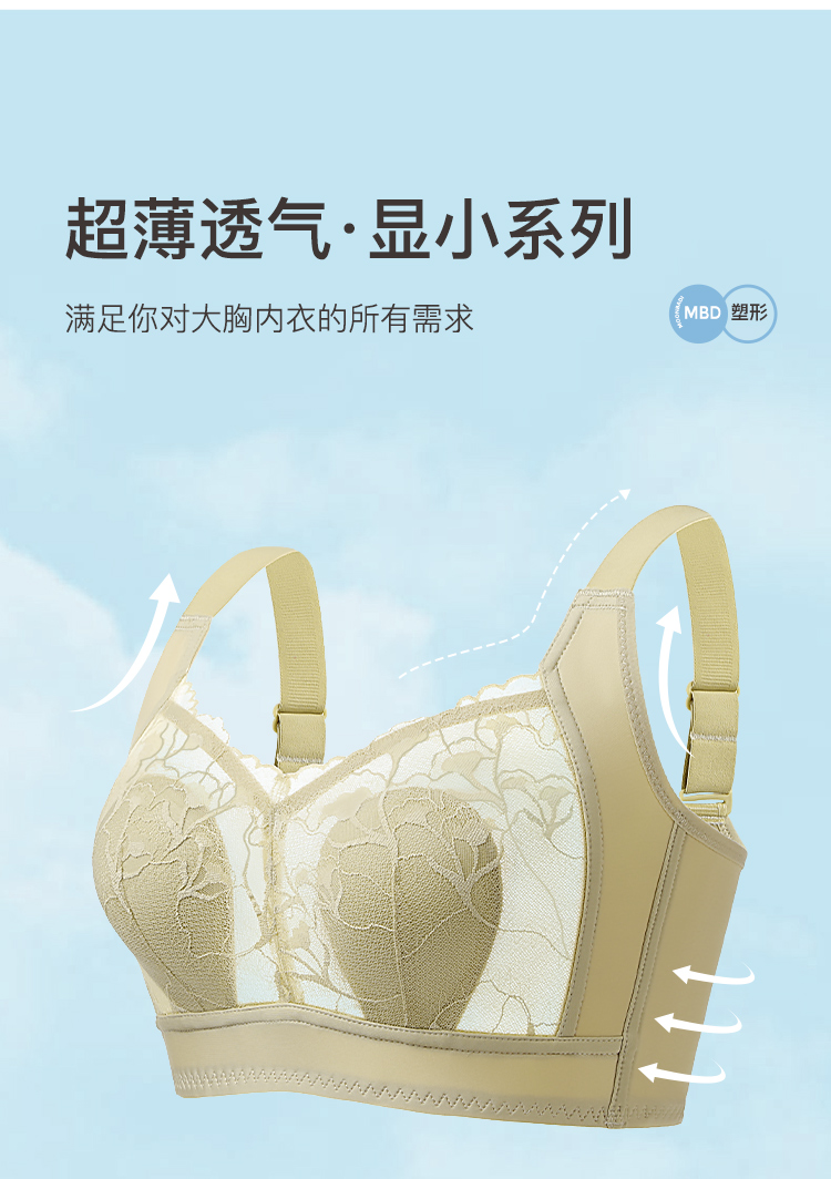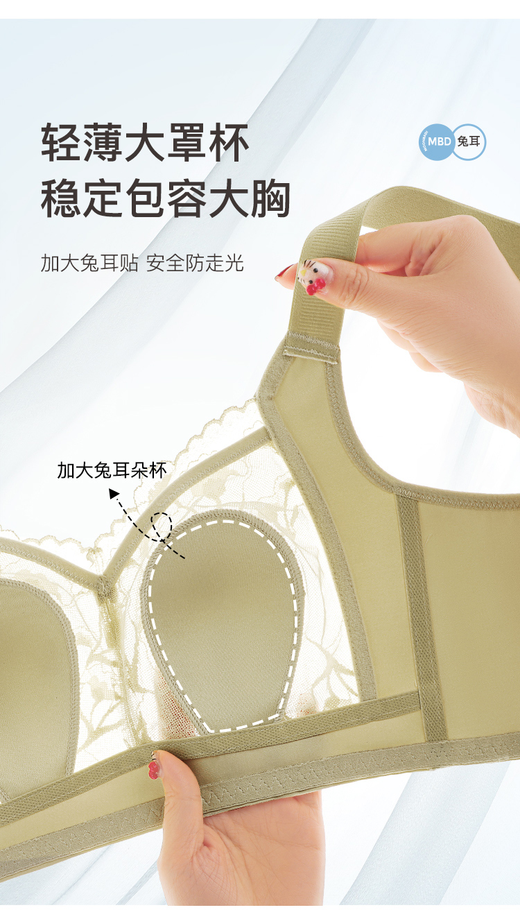 【大胸显小】轻薄透气蕾丝兔耳杯内衣女显瘦显小不闷汗无钢圈文胸