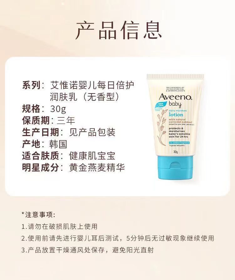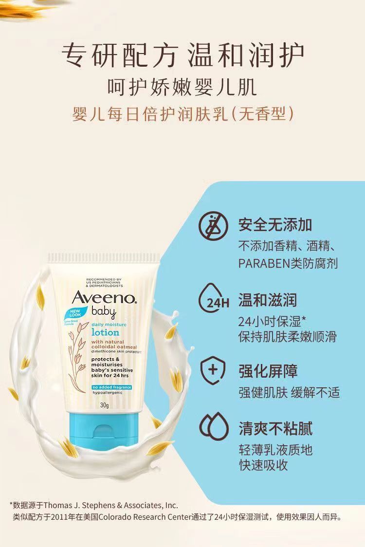 【2支装】保税直发 Aveeno艾惟诺艾维诺燕麦每日倍护润肤乳(无香型)30g*2支