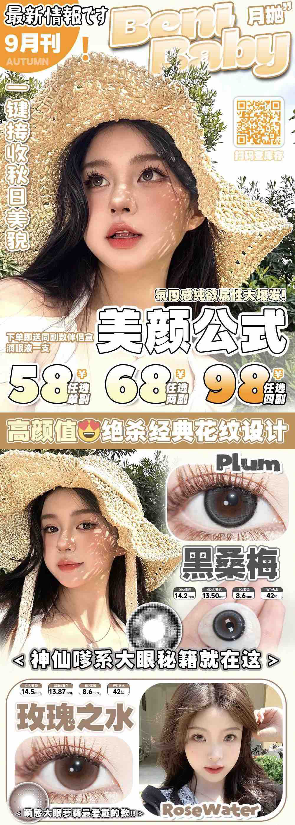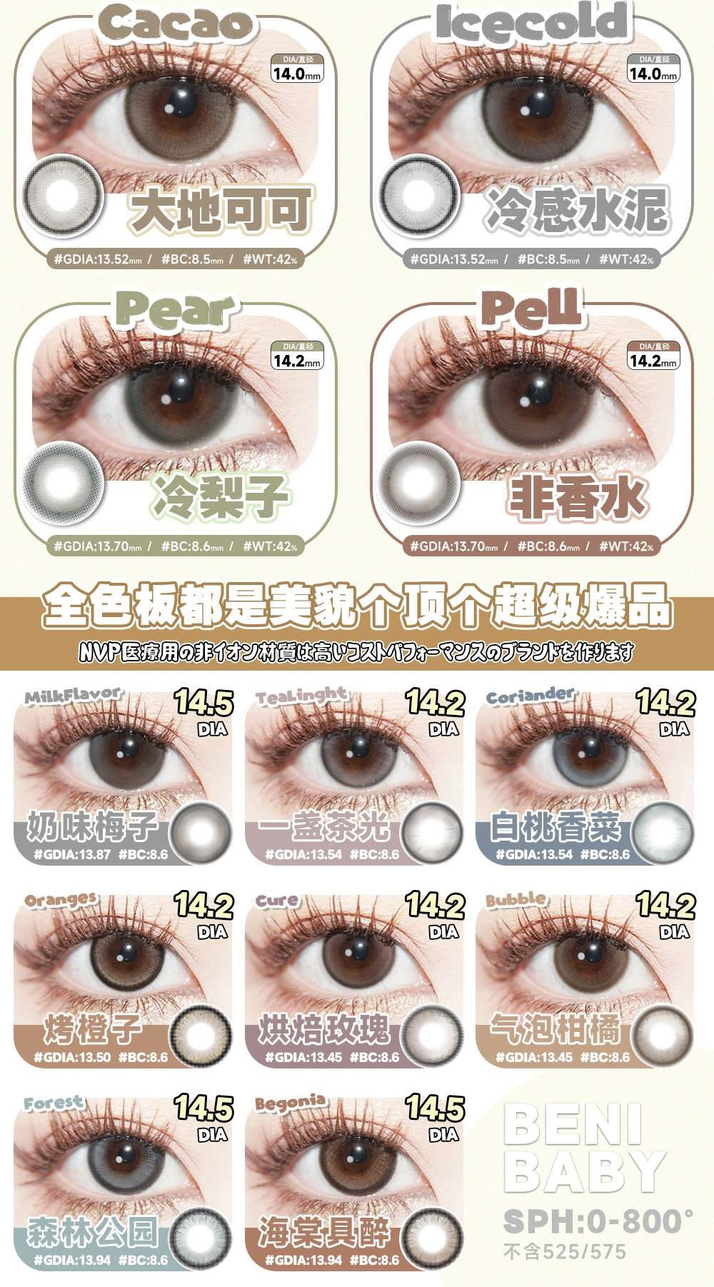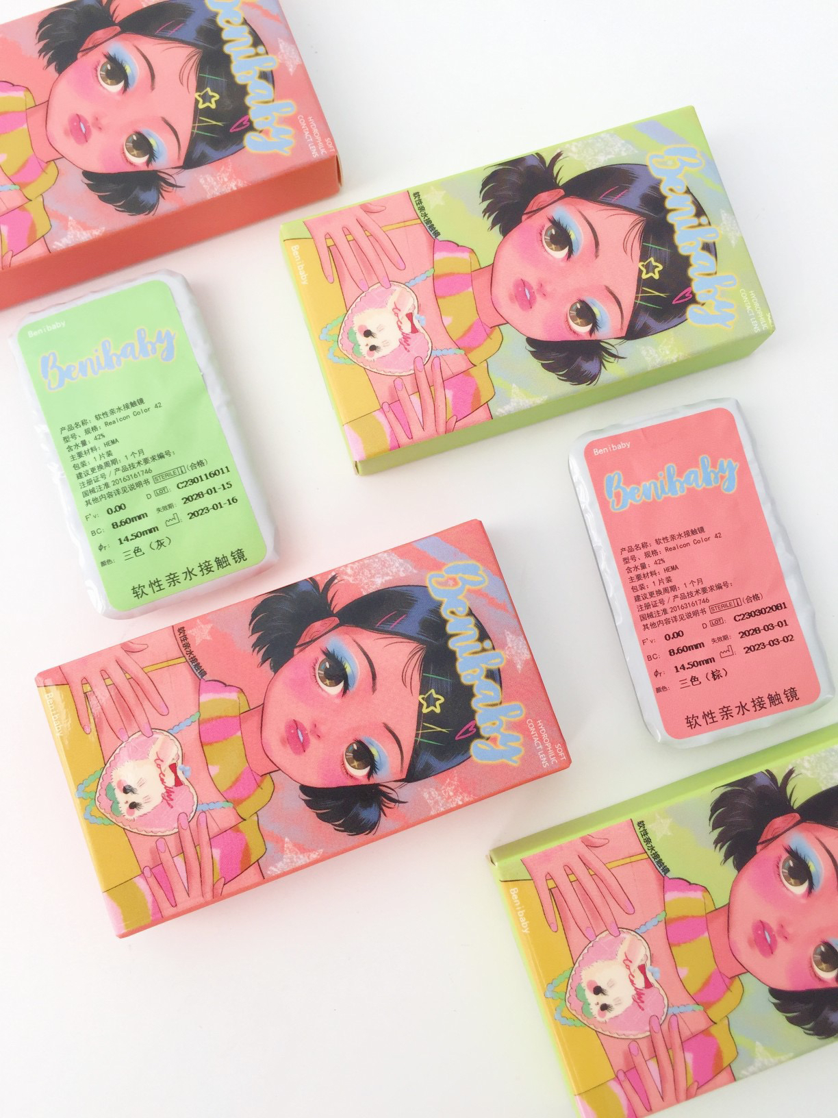benibaby月抛活动;全员高颜值,日期新鲜放心囤!抢购价 58/副 68/2副 98/4副;送伴侣盒+润眼液