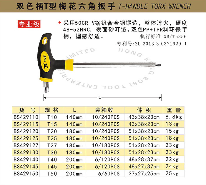 波斯 双色柄T型梅花内六角扳手(多规格) BS429110