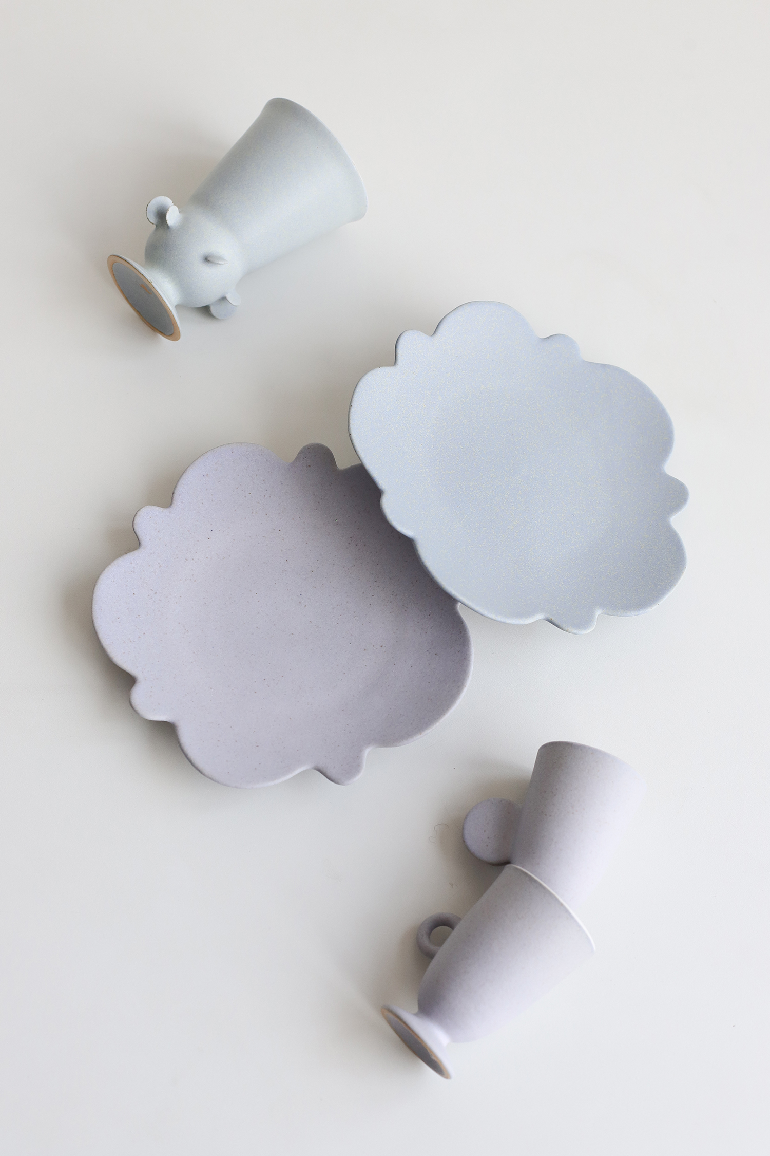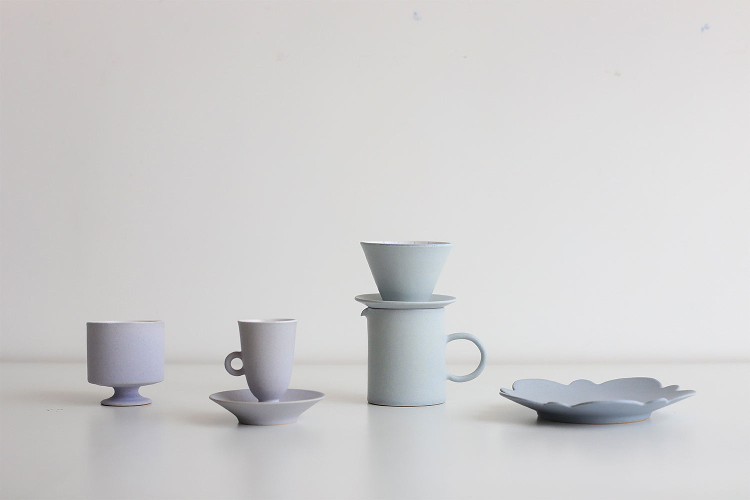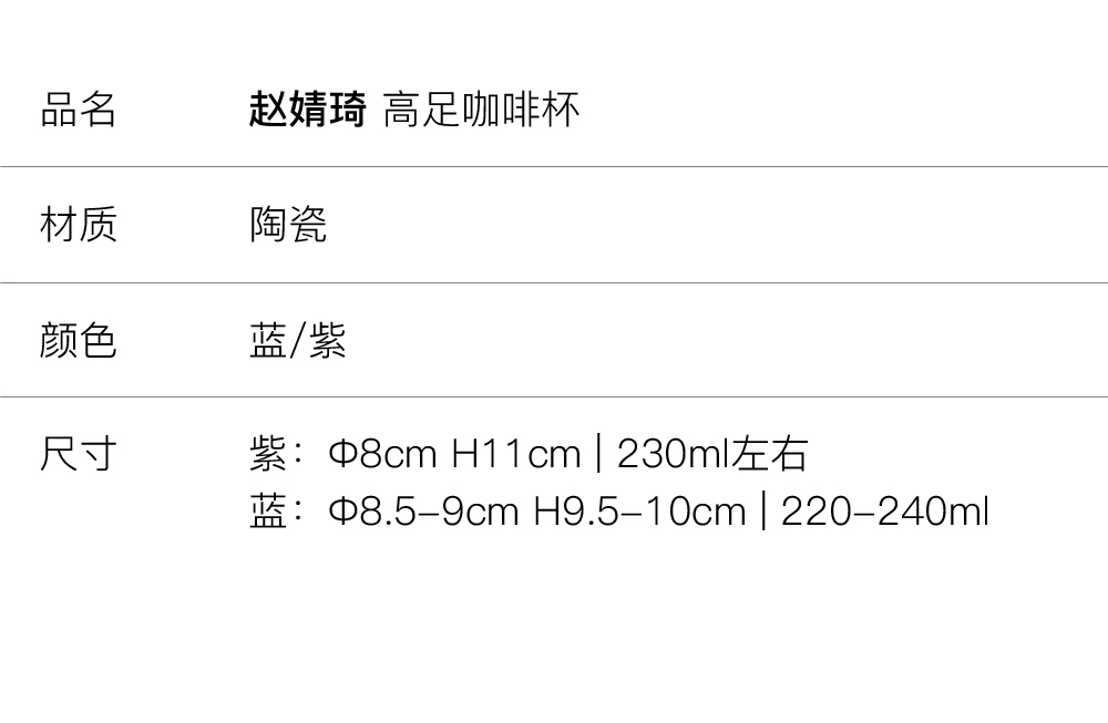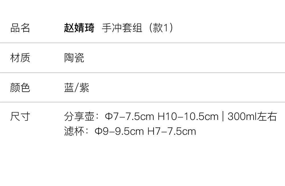 赵婧琦 陶瓷手冲套组 蓝紫高足杯 盘