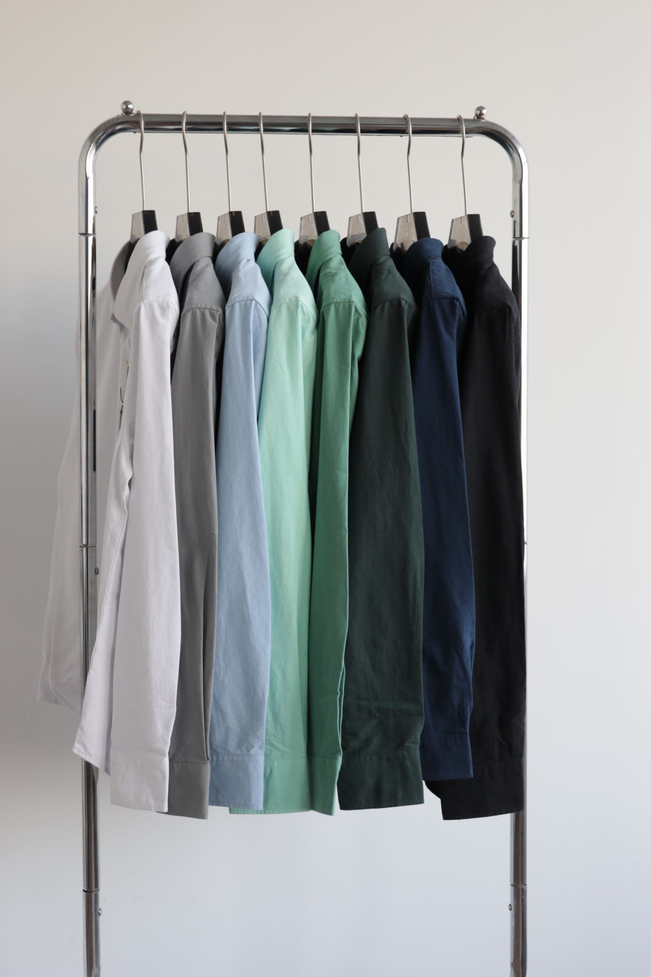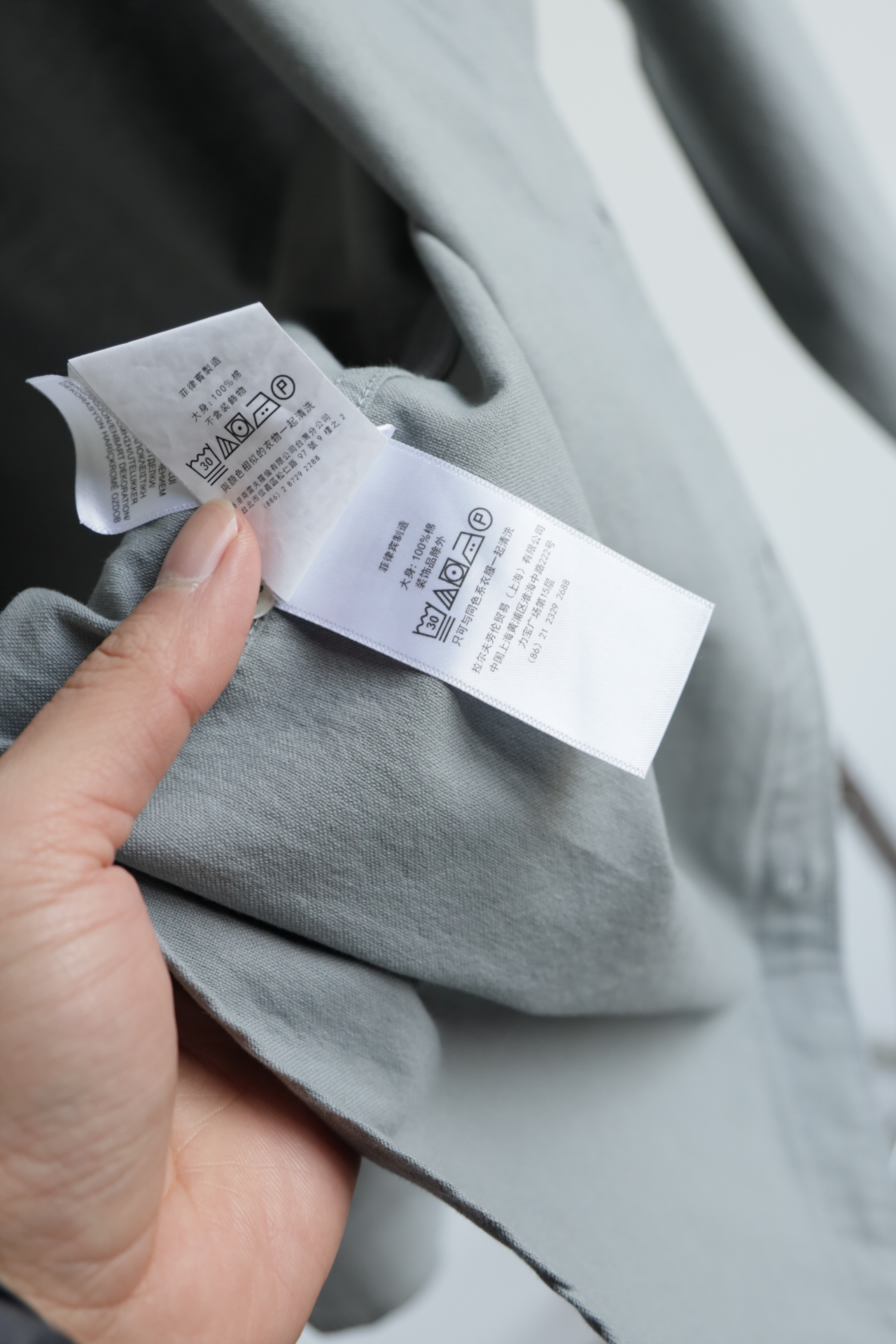 全棉水洗牛津纺,小标刺绣,弧形下摆,微宽松版型