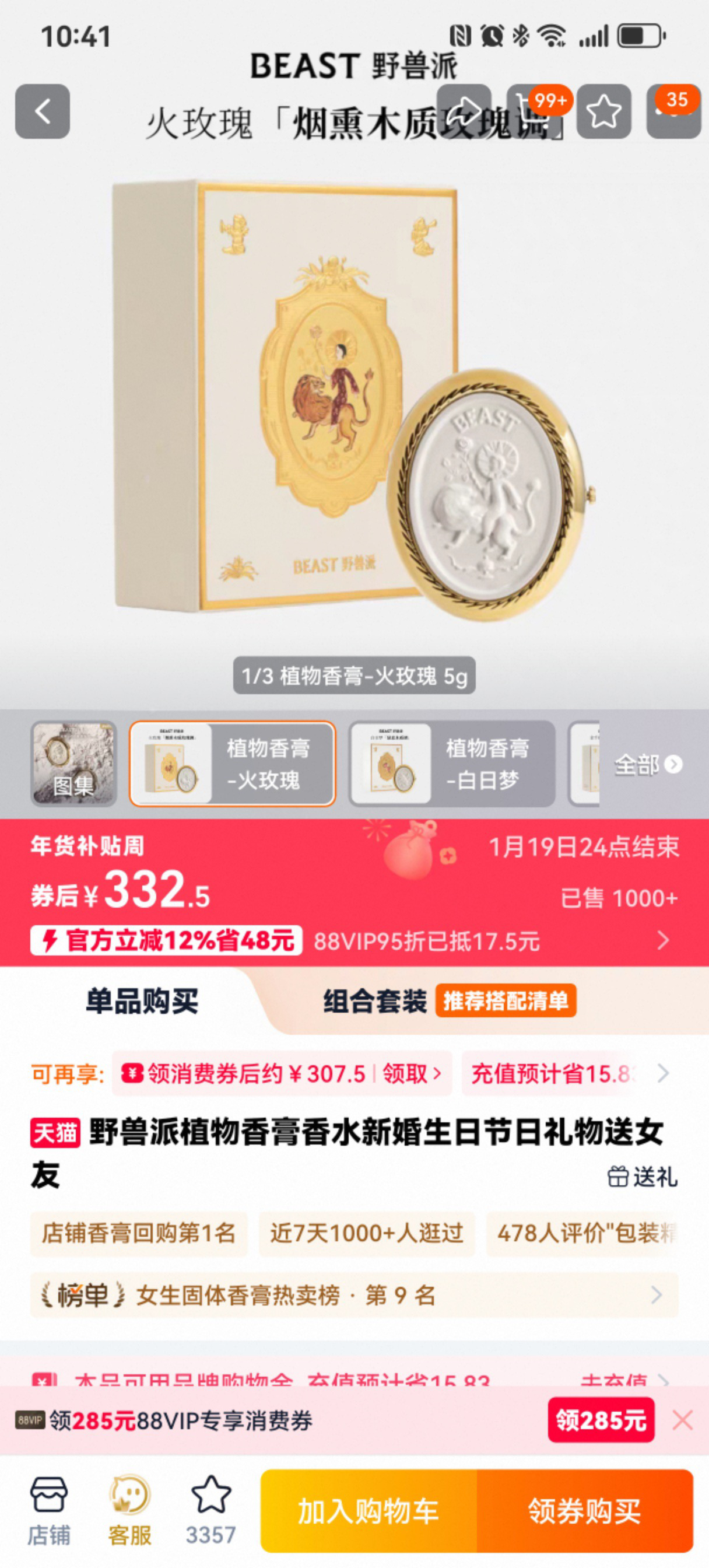 野兽派 随身 植物香膏 复古鎏金 随身巴洛克艺 一触即生香 优雅随身行