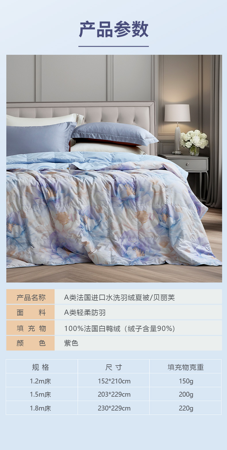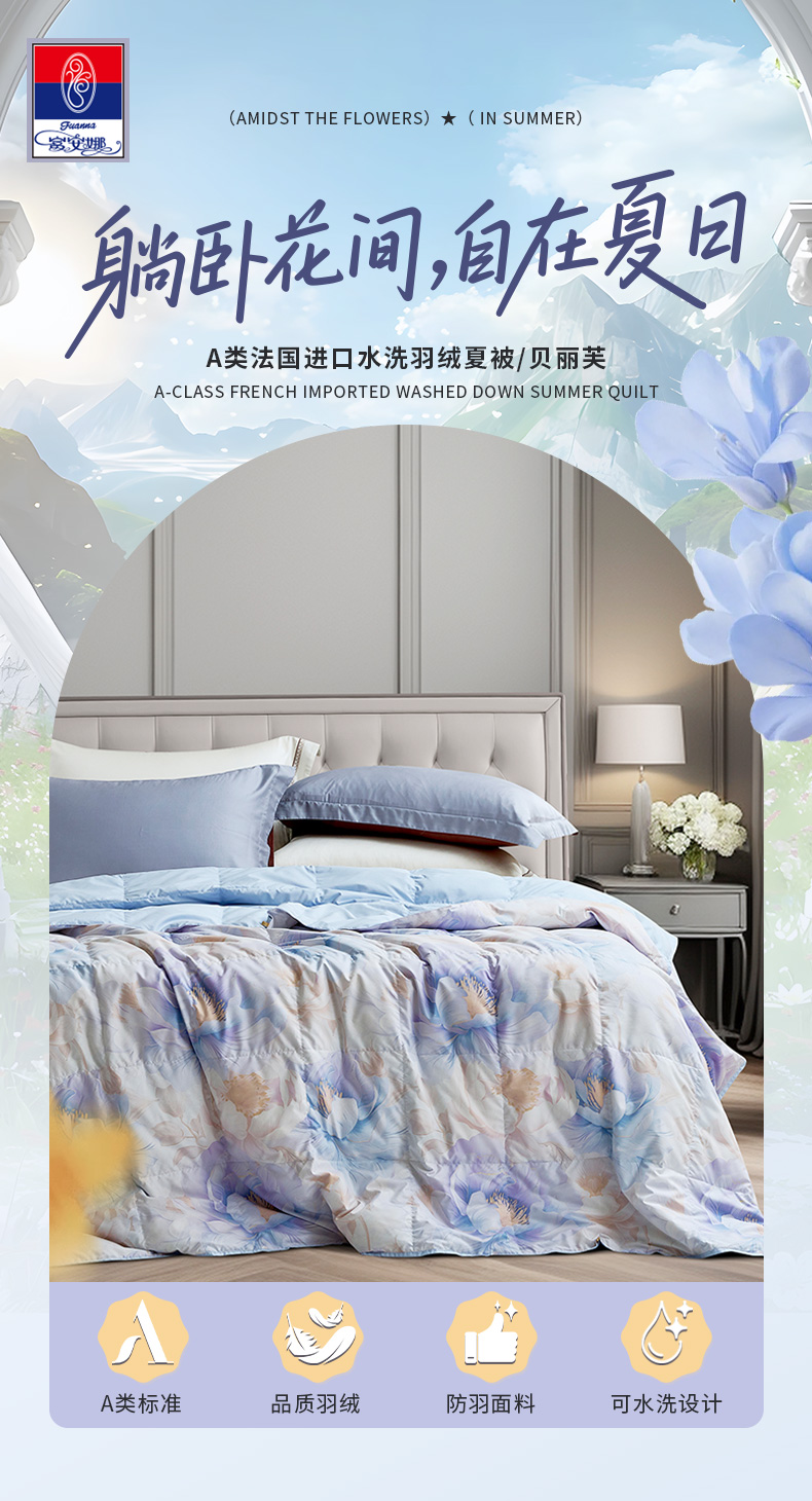 【6楼】富安娜A类法国进口水洗羽绒夏被\贝丽芙,牌牌价3980/4980,【会员节专享价】899/999元