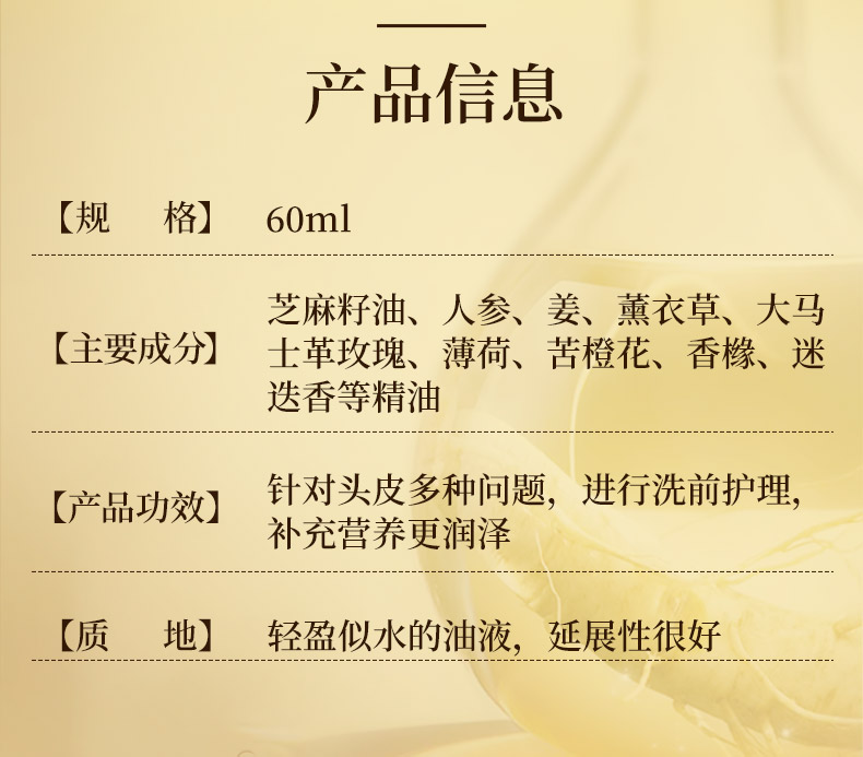 【双12大促】嘉媚乐参姜头皮奢护蓬盈精油60ml 润发护发 烫染顺滑