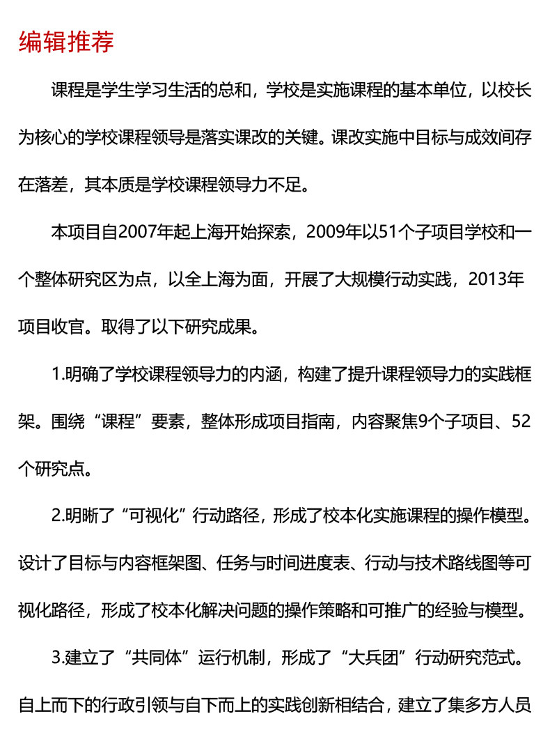 上海市提升中小学课程领导力行动研究项目成果4册 理论基础 方案实录 案例评析