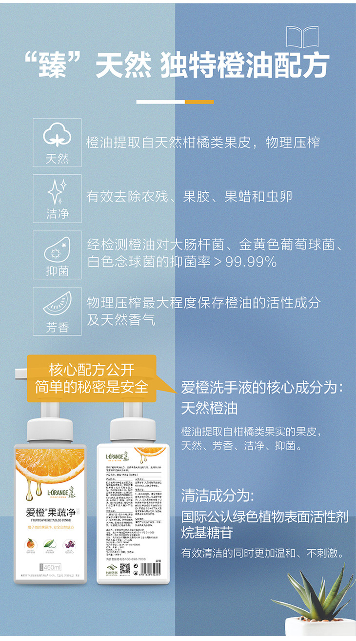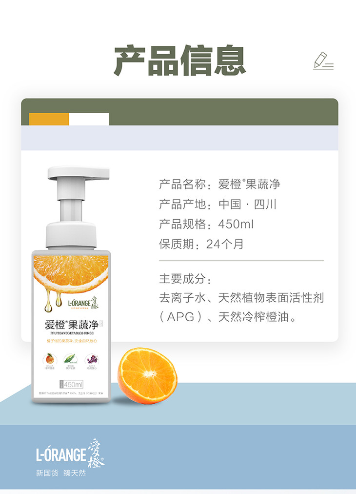 爱橙果蔬净 果蔬专用清洗剂 天然橘油去残留