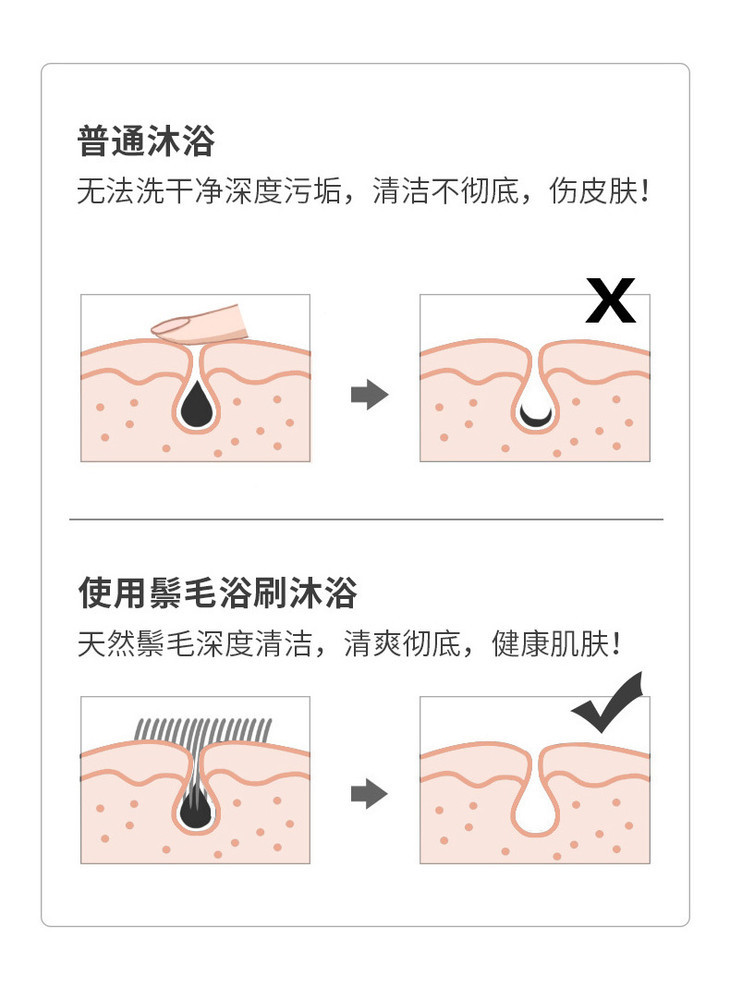 我自留的肯定是软毛刷了,我的皮可太脆了!用下来比普通手搓清洁效果真出色太多,靠着天然鬃毛的细腻韧性,能深入毛孔缝隙,把藏在里面的污垢“扫”出来,同时还能轻柔按摩肌肤,帮助紧致、减少脂肪团堆积,让洗澡不再只是简单的清洁,更成了一场温和的护理。