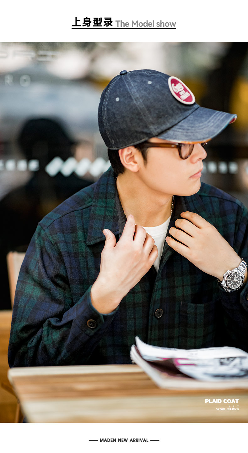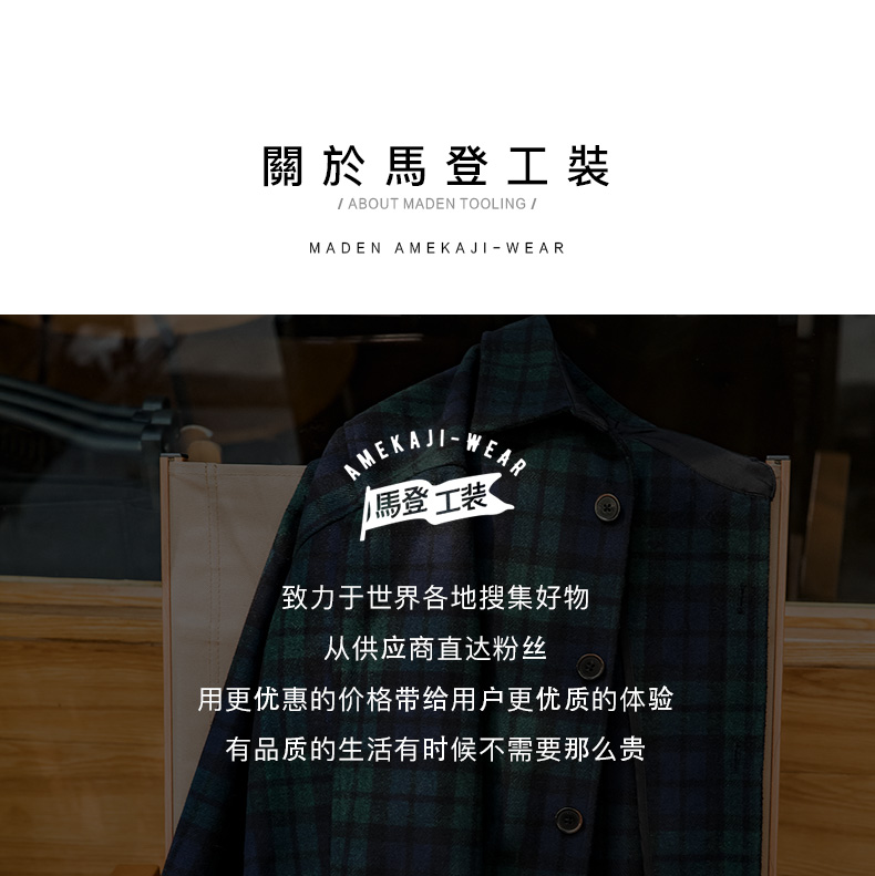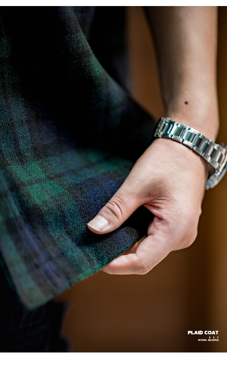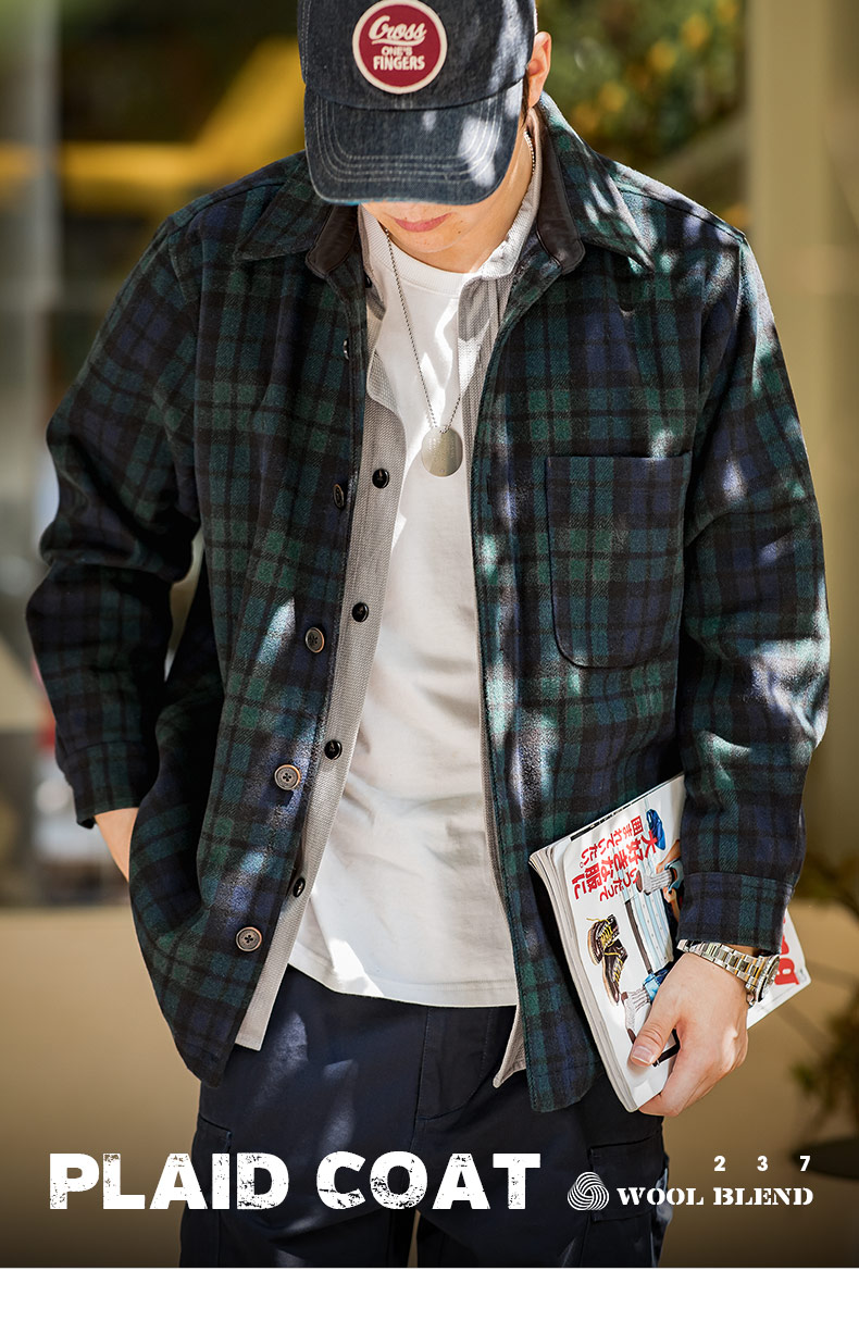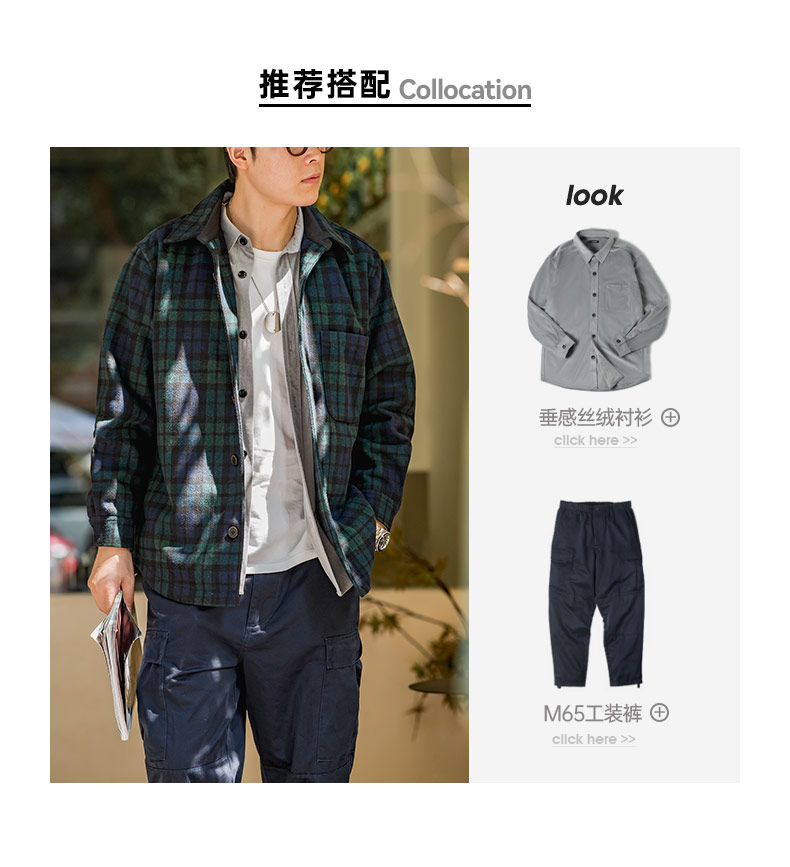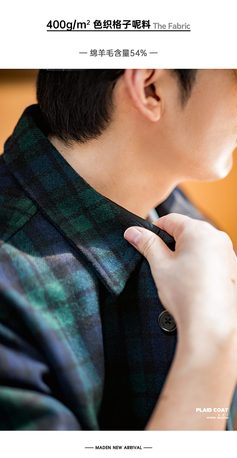 马登工装 日系复古蓝绿格子毛呢夹克宽松厚实格纹衬衫外套男秋季