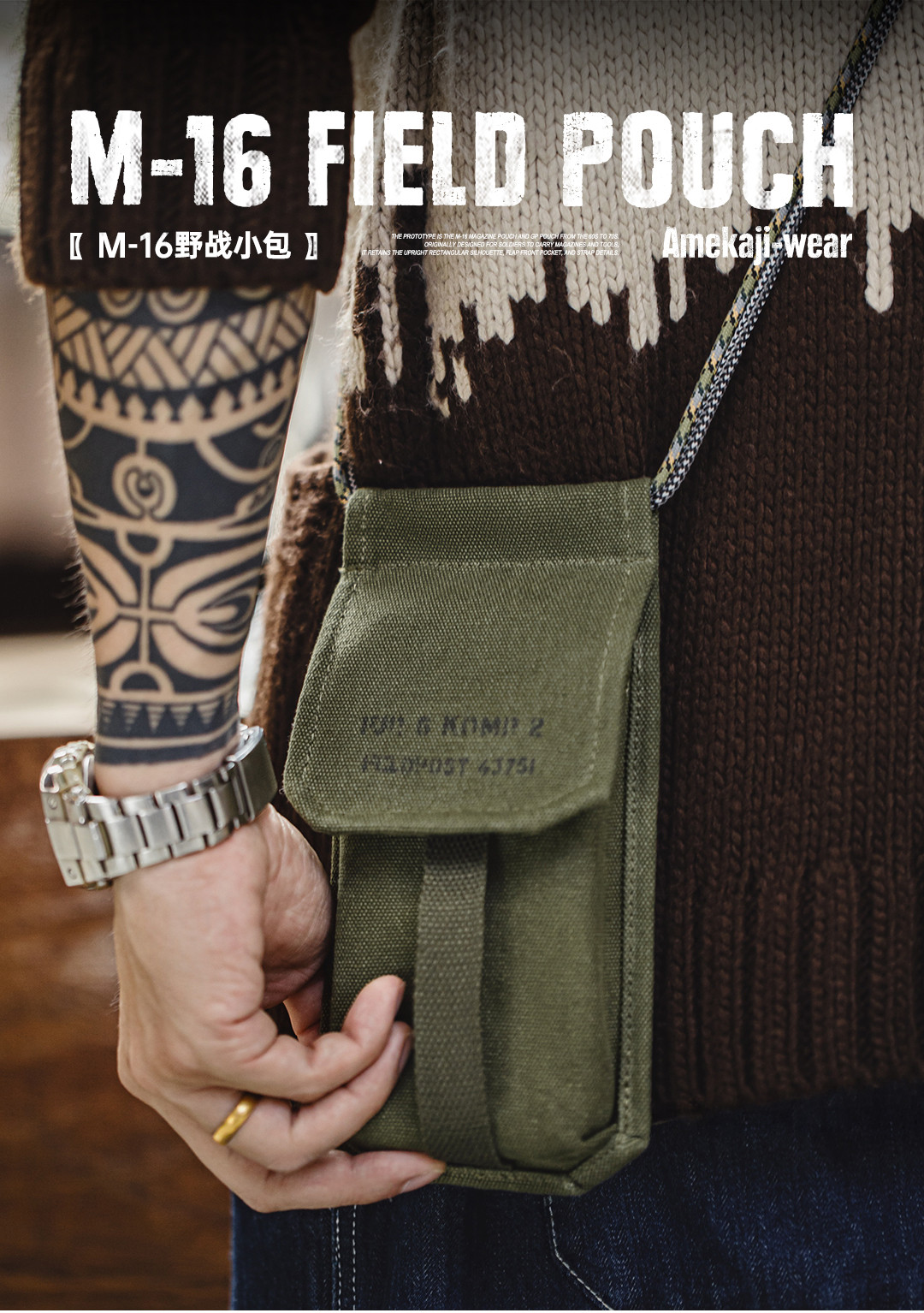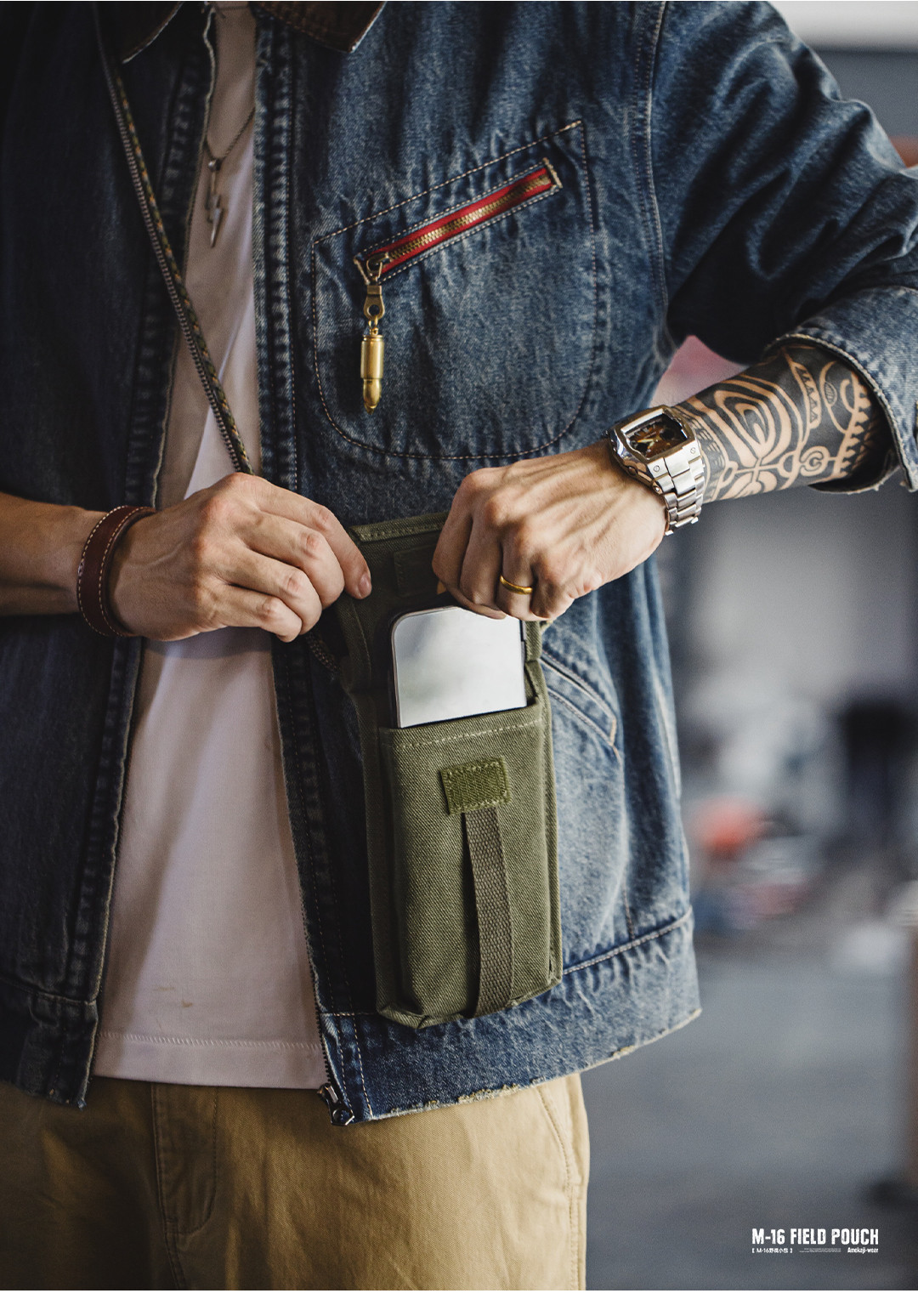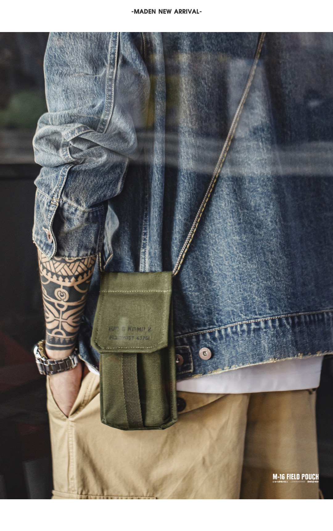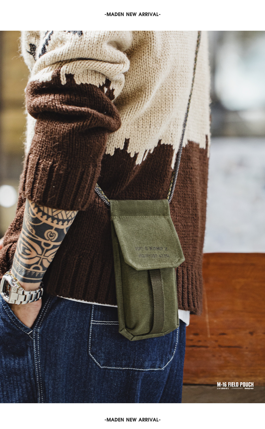 马登工装美式复古斜挎包迷你手机小包军绿色通勤帆布包挎包男款