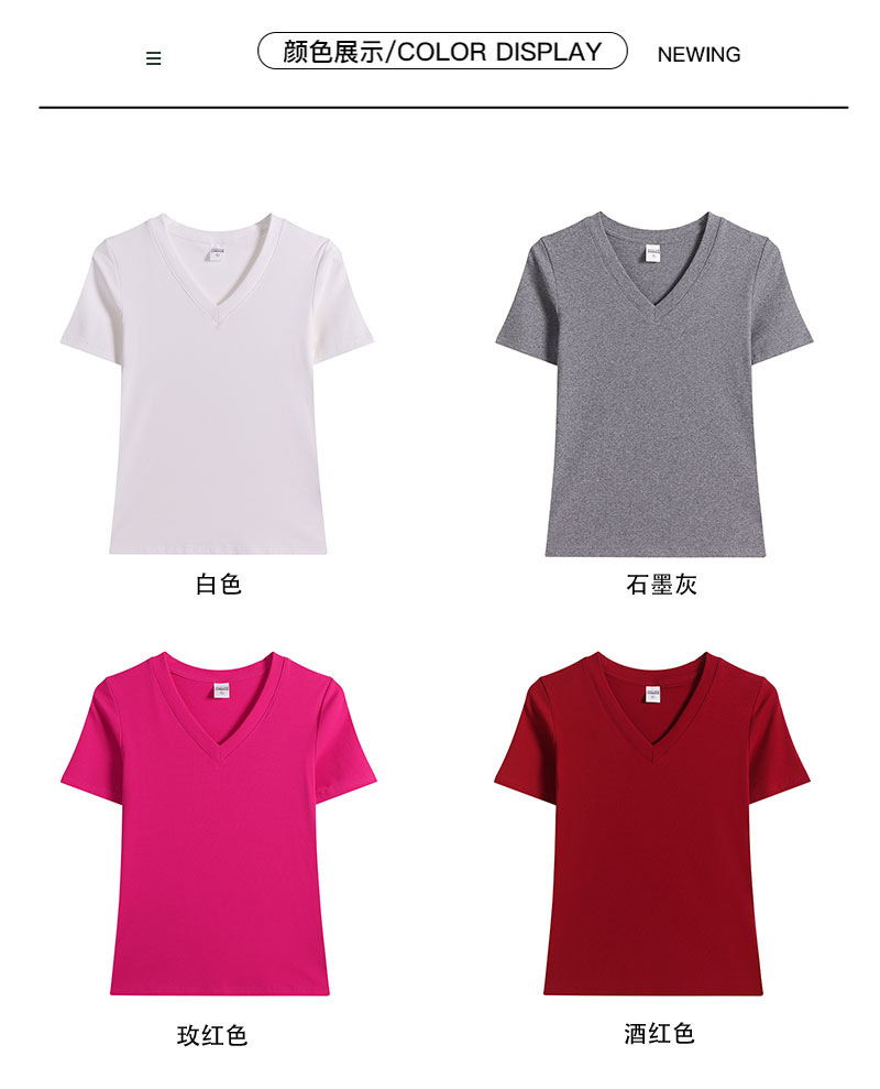 69元2件多巴胺V领正肩短袖 女夏季t恤短款修身显瘦别致百搭上衣