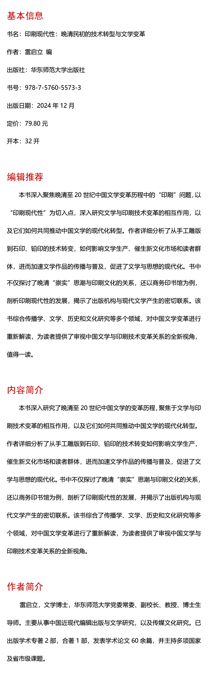 印刷现代性 晚清民初的技术转型与文学变革 雷启立 中国文学