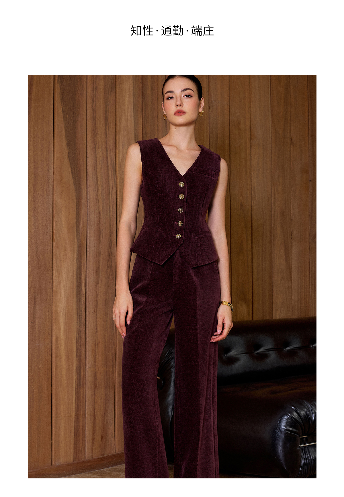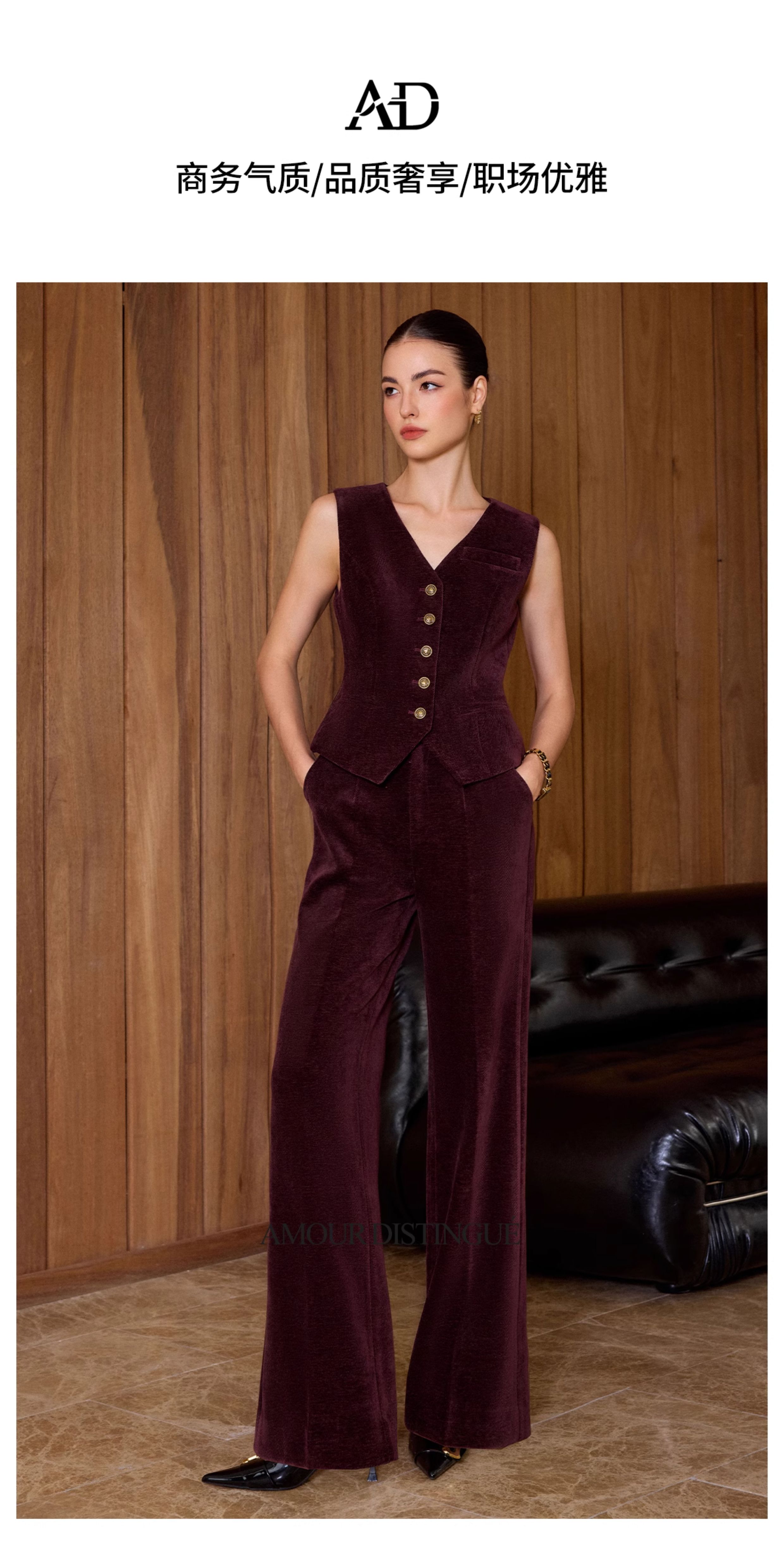 AD复古老钱风V领排扣马甲女2025冬季丝绒无袖西装马夹高级感套装