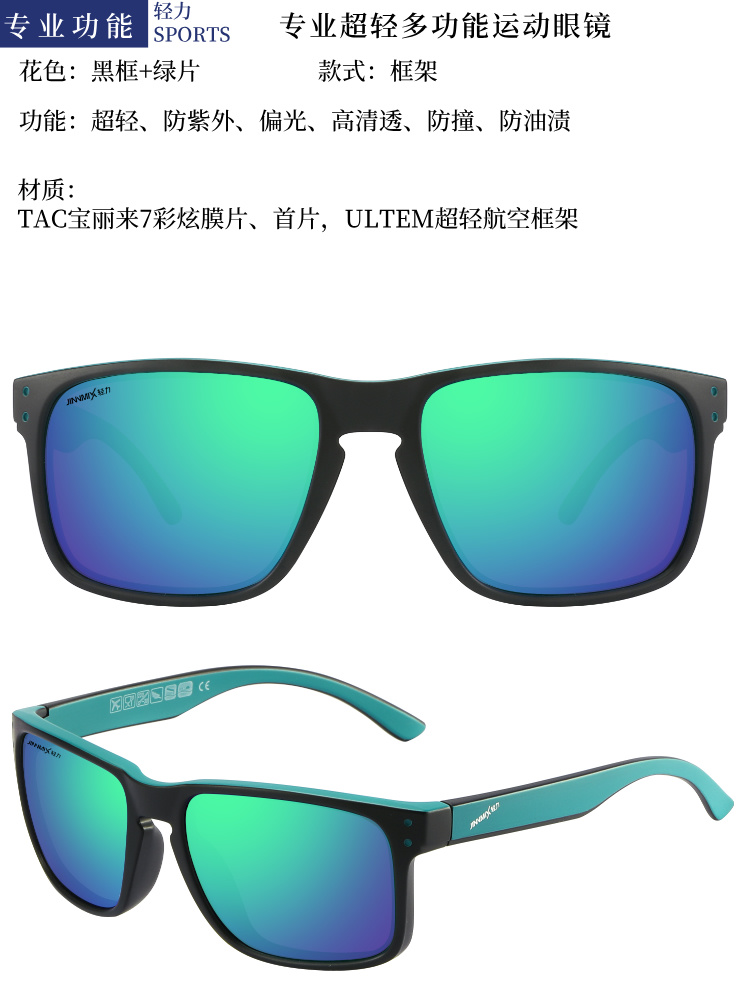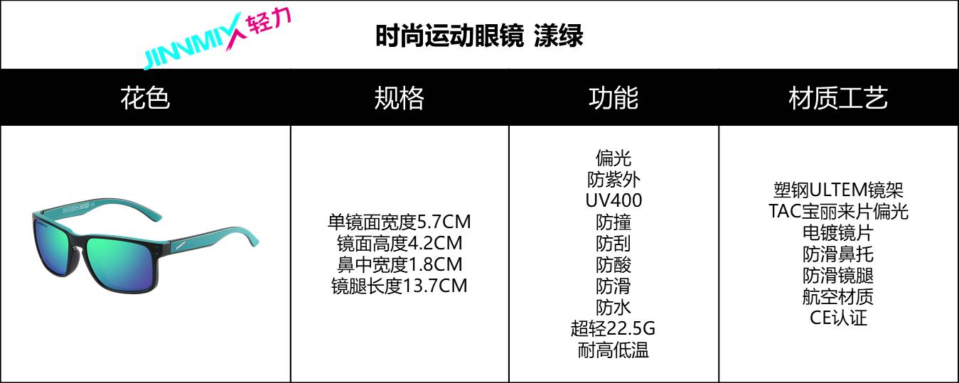 JINNMIX轻力漾绿超轻偏光防紫外防酸时尚运动眼镜