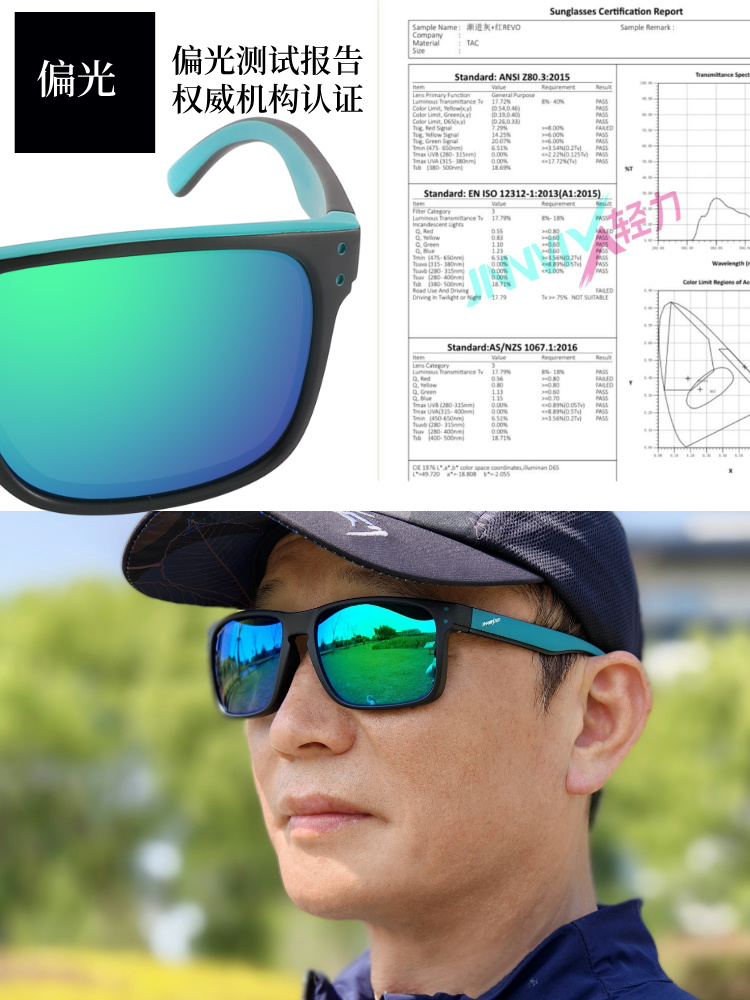2、轻力不仅偏光,同时防紫外线指数达到UV400,镜片100%防紫外。