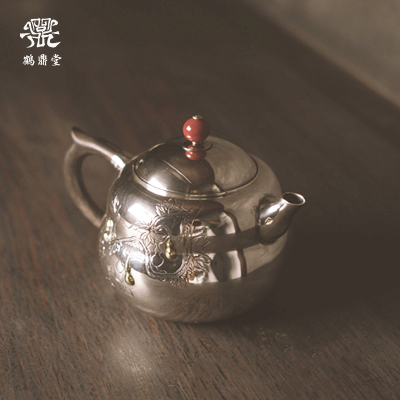 鹤鼎堂闻天系列斐兮急须錾刻福禄吉祥(银色)(缺货)