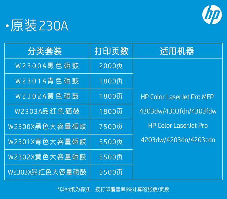 惠普(HP)原装W2300A原装硒鼓彩黑色230A硒鼓W2301A W2302A W2303A适用4303dw 4303fdn 4303fdw 4203dw打印机墨粉盒