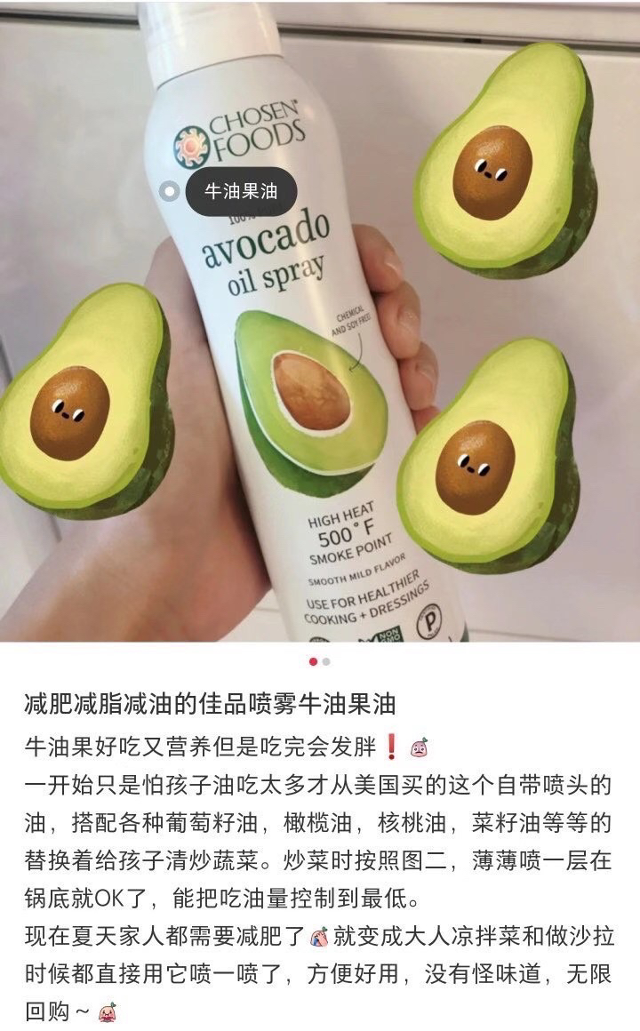 特价240元🉐️既方便又健康营养的牛油果油喷雾,孕妇🤰和宝宝们也可以实用,成分很健康和安全,喷雾装省油且均匀,一套只要240元/2瓶🉐✨推荐给大家这一款非常方便的有机牛油果油喷雾!平时在家做煎饼的时候!常常下重手!煎出来的煎饼都非常油腻!用油就用好油‼这款有牛油果油喷雾!只要在锅上轻松喷几下!就能沾满锅!也不会过多!把油用得刚刚好✅平时做沙拉!三文治也可以用得上!特别是烘焙😎绝对是神器!在美国不少餐厅都是使用油喷雾!既可以省油!做出来的食品又不会太油腻!!一支383g,每次使用前先摇晃再使用!油喷出来更均匀!一组2瓶装!!