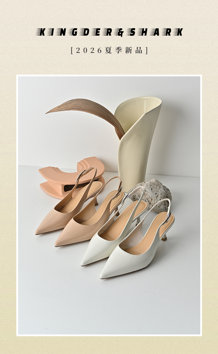 经典鲨2026年专柜新品气质尖头6cm细高跟后空单鞋时装凉鞋女KW89-629111
