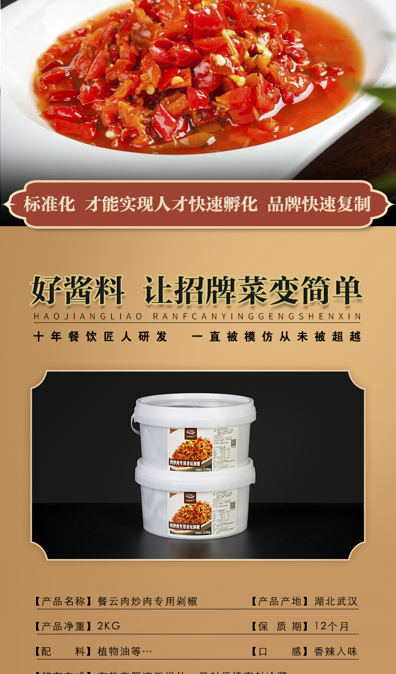 餐云肉炒肉专用剁椒酱 湘菜大师创新研发即辣椒炒肉之后的第二道经典创新肉炒肉 一道菜撑起一家店 实现标准化操作 (5斤装一桶做50份)