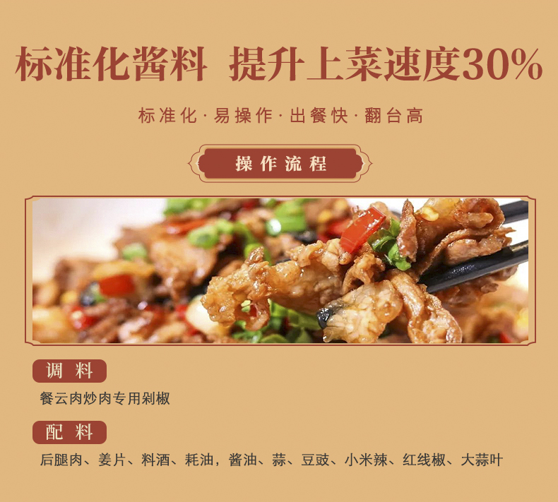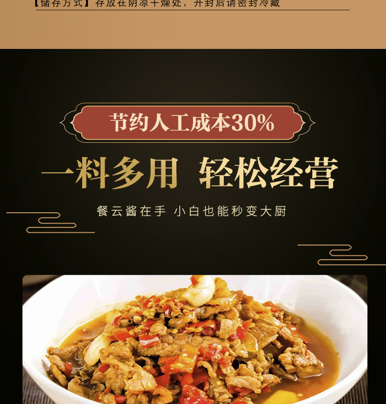 餐云标准化酱料为餐饮节约厨房人工成本30%,无厨师经验从业者通过标准化流程亦可操作,30名国内中餐大厨专家365天持续研发创新!