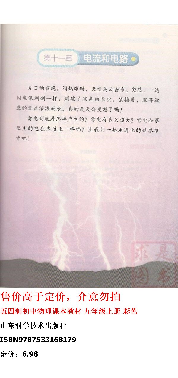 五四学制鲁科版初中物理九年级上册课本 9年级物理上册教材 山东科学技术出版社教科书