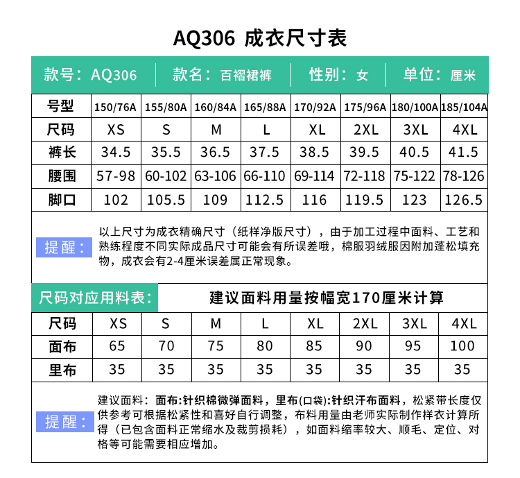 裁缝学苑AQ306 夏新款A字五分裤短裤纸样百褶裙裤子样板做衣服打版