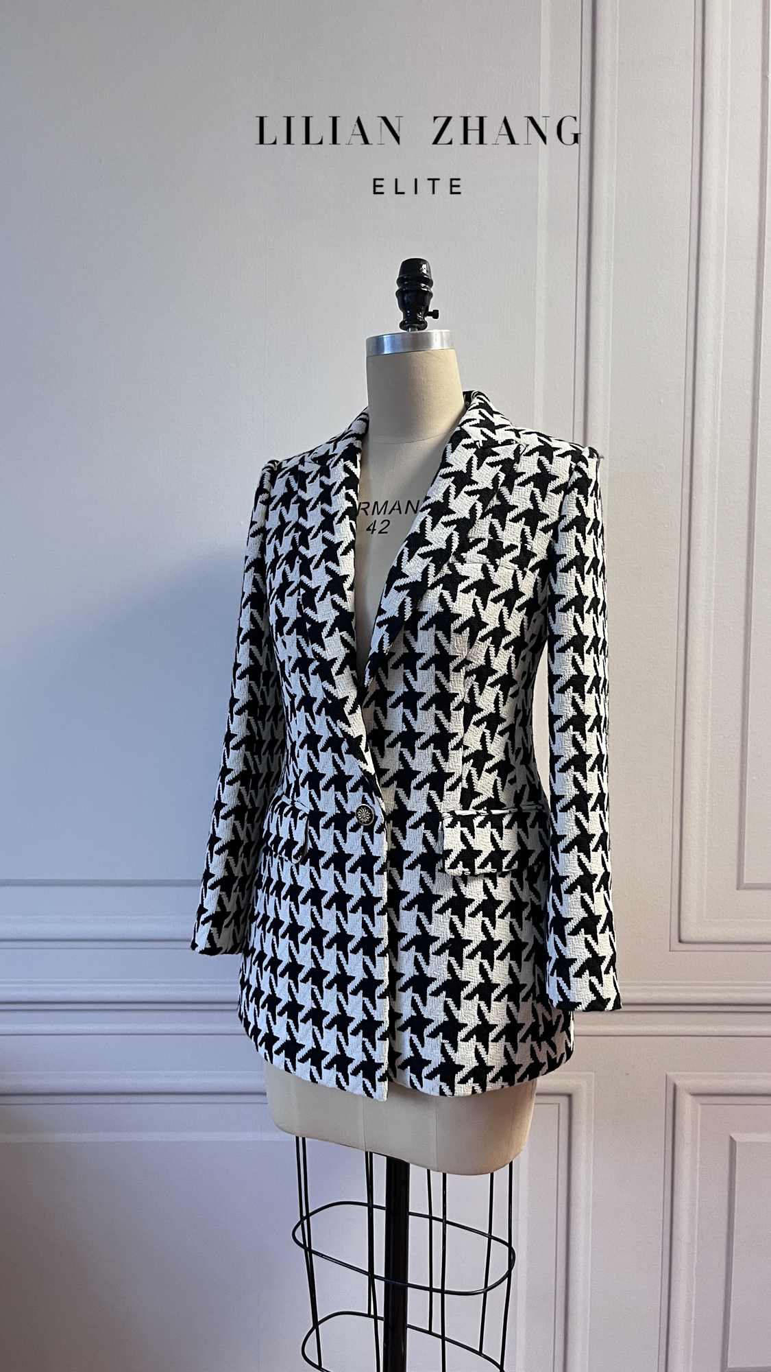 定制—Vintage—Lady挚爱、英伦风千鸟格修身黑白西装外套2205026