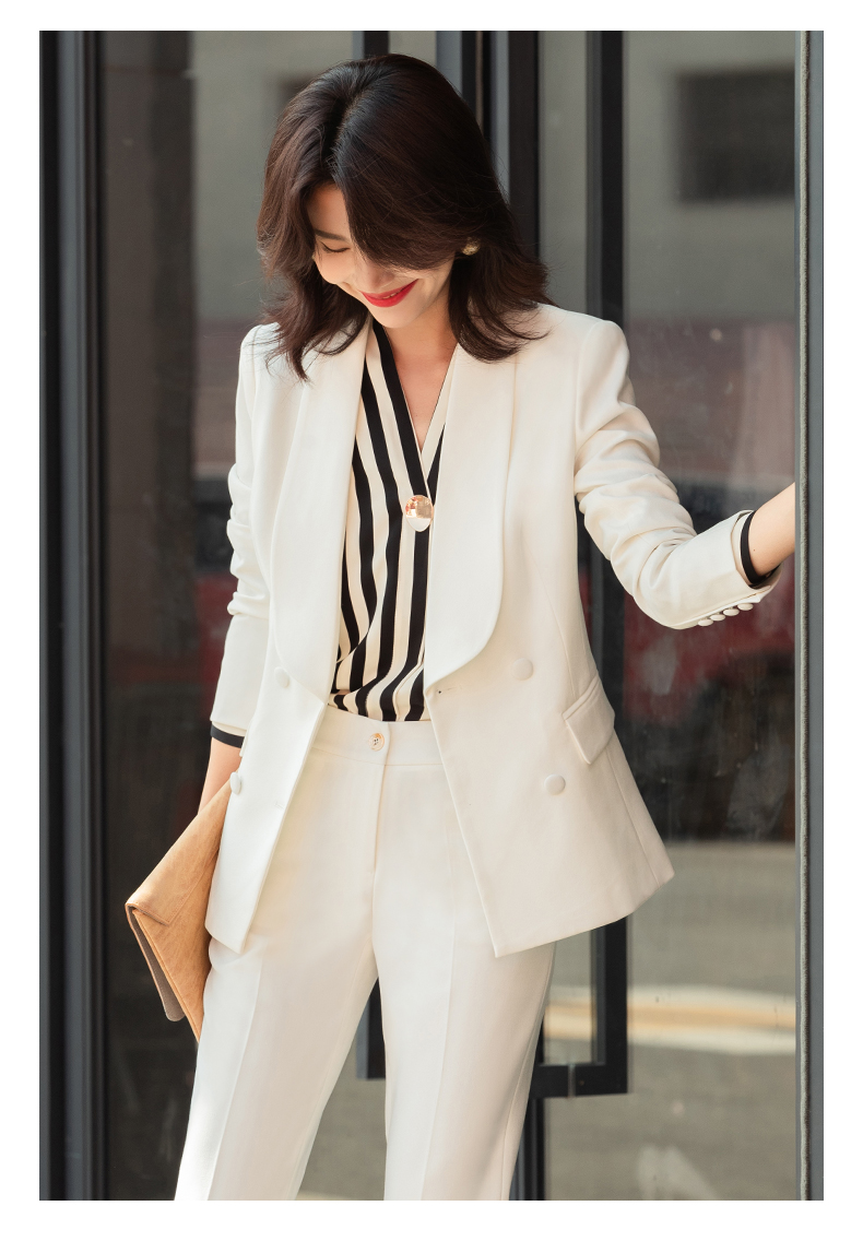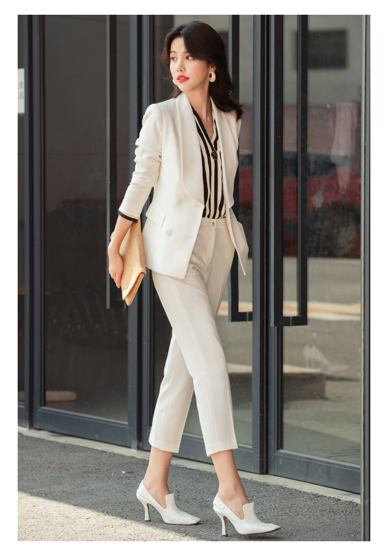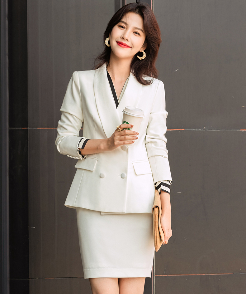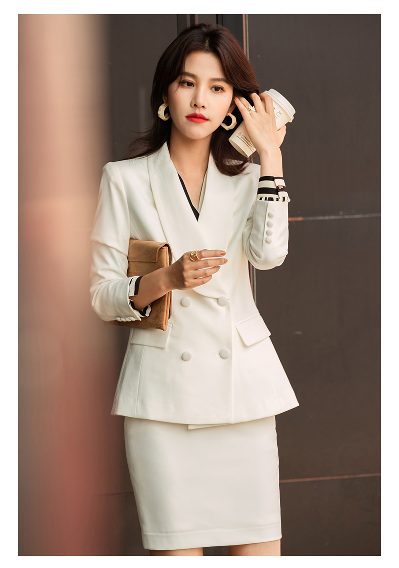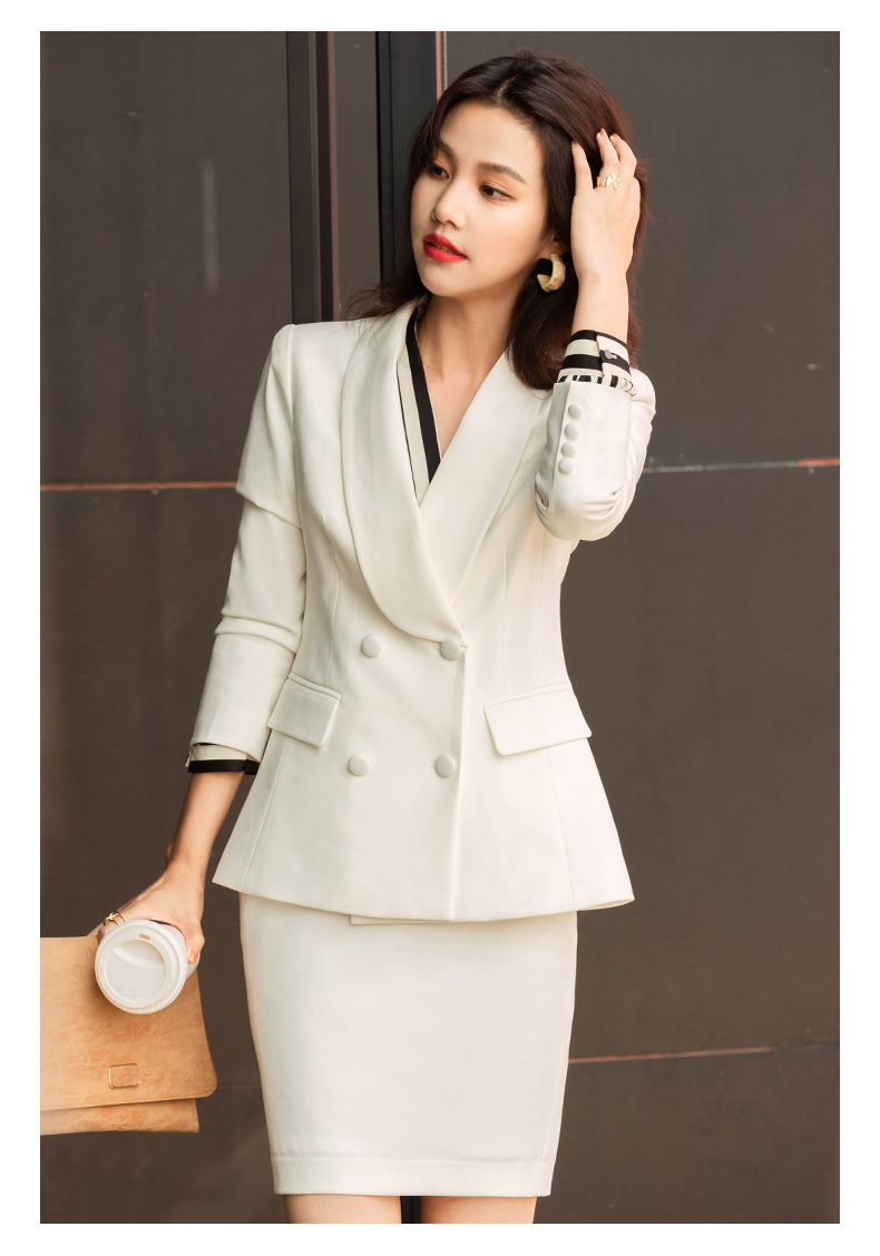 白色职业套装女秋冬职业装套裙美容院酒店前台接待工作服