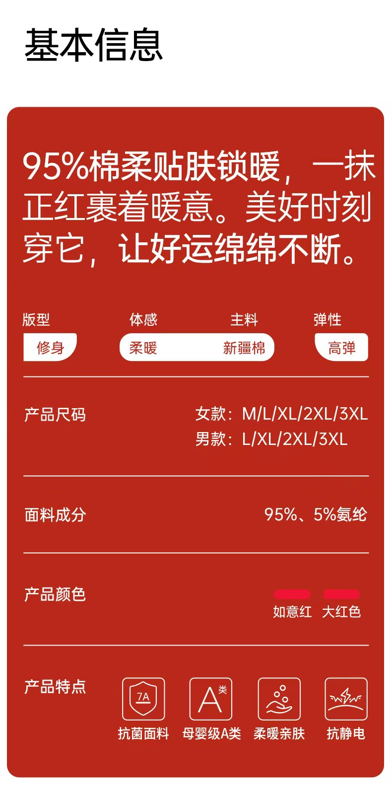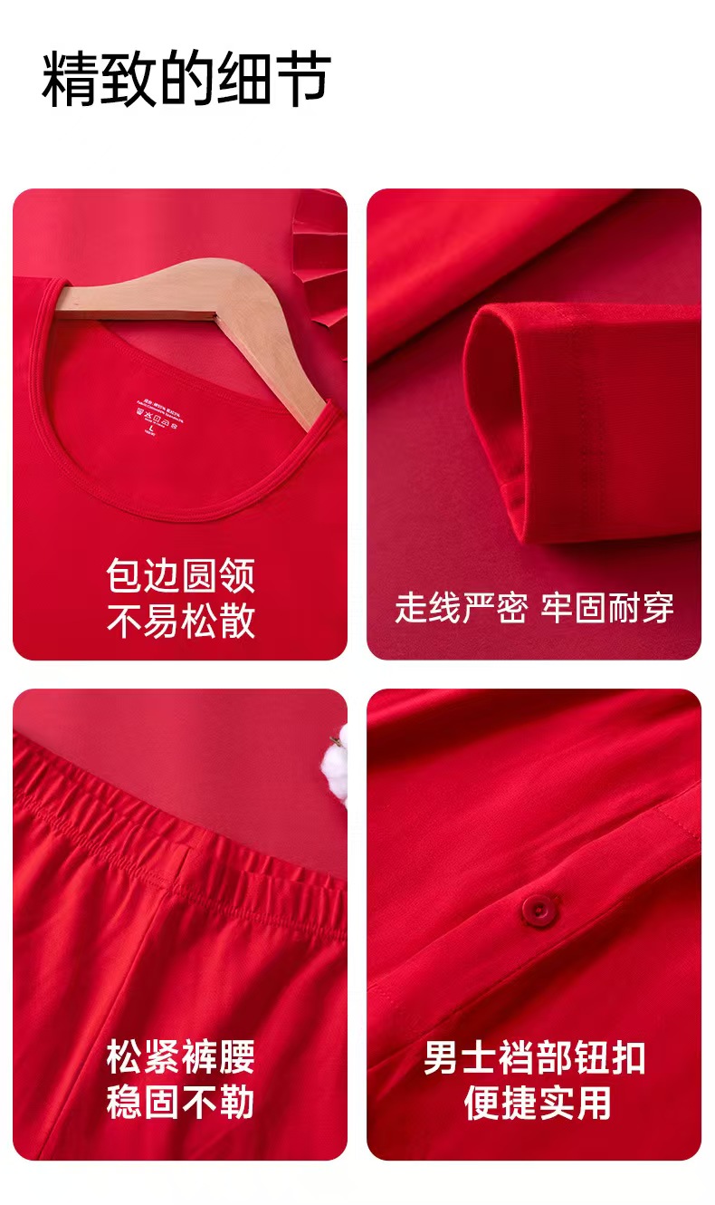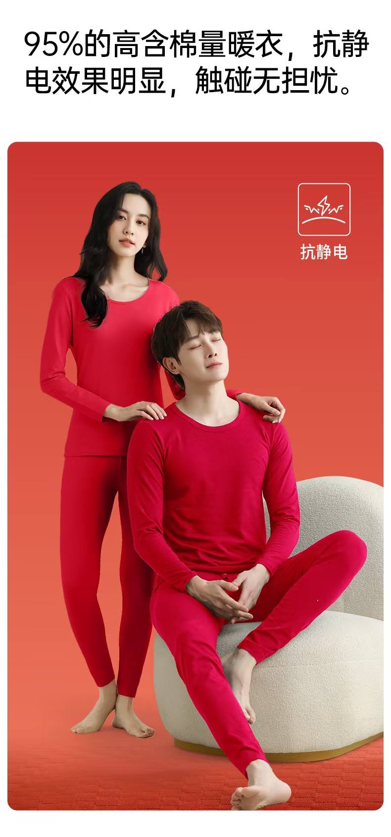 热卖中!!【2026马年本命年红色保暖套装】 男女纯棉7A抗菌情侣款 母婴级A类面料 暖身抗静电