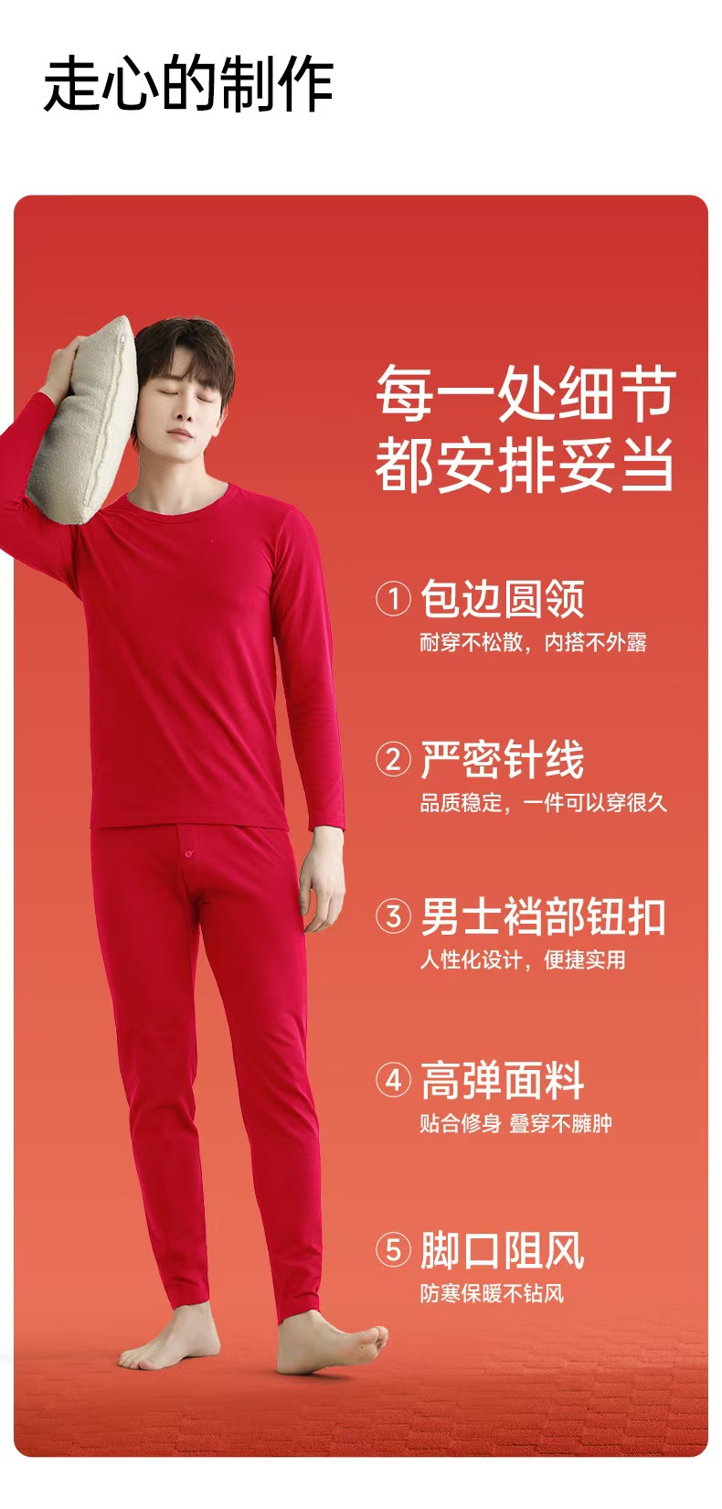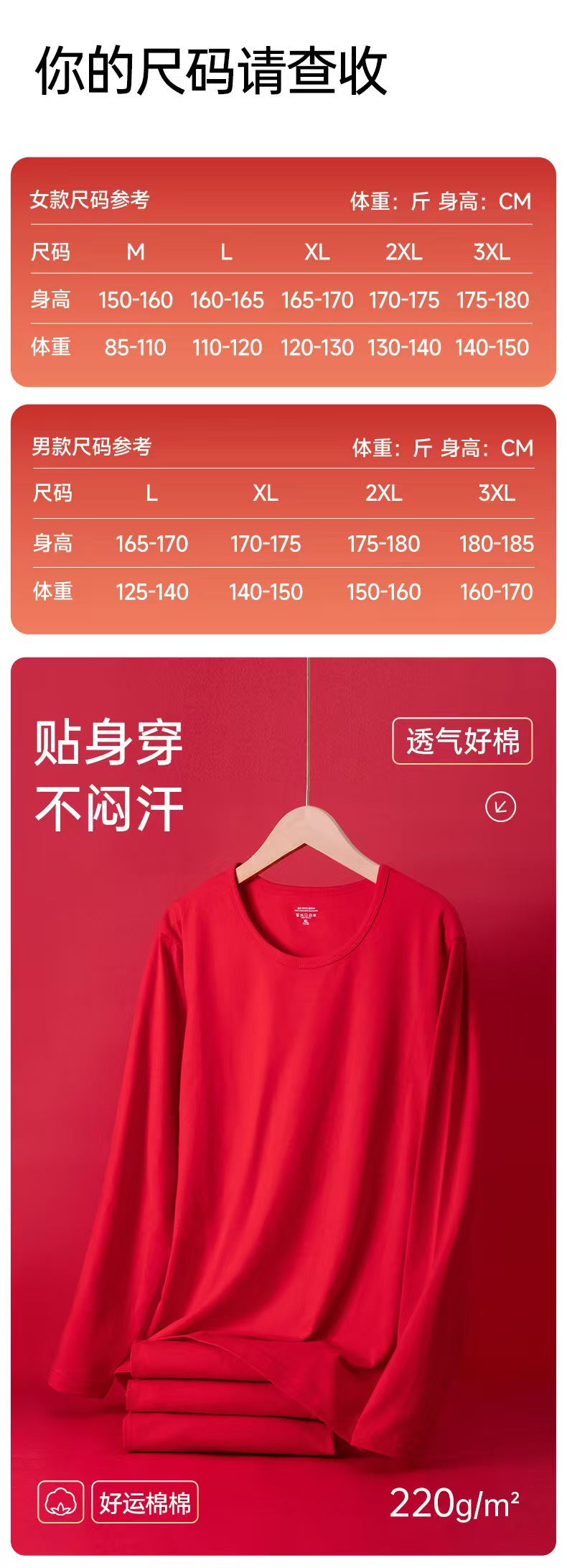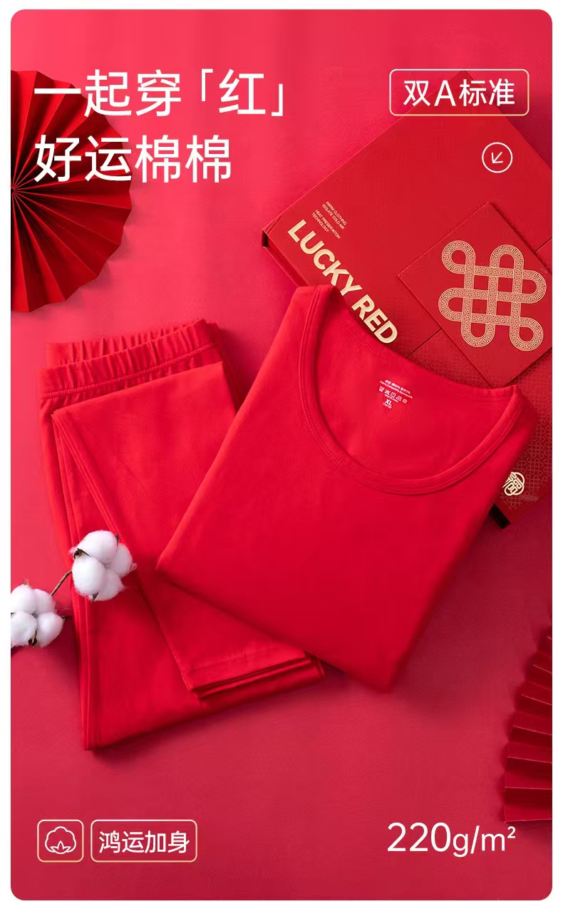 热卖中!!【2026马年本命年红色保暖套装】 男女纯棉7A抗菌情侣款 母婴级A类面料 暖身抗静电
