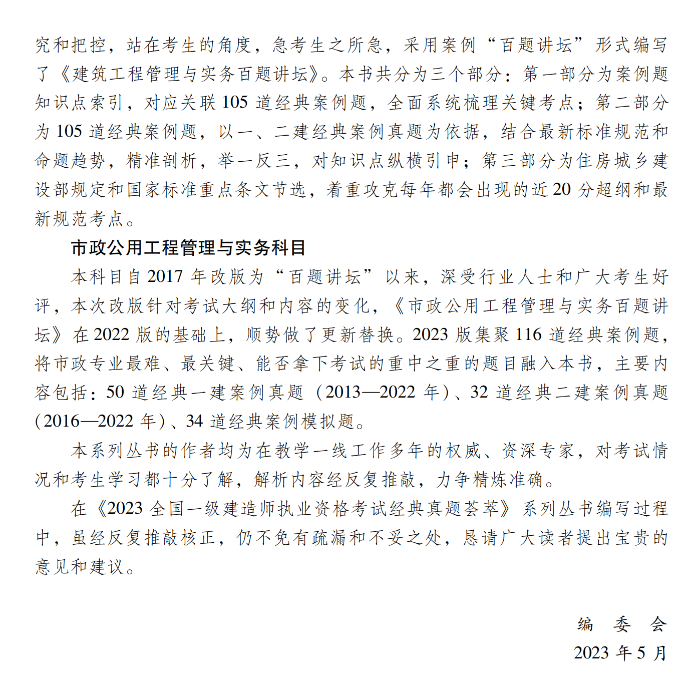 市政公用工程管理与实务百题讲坛/胡宗强主编 2023全国一级建造师执业资格考试经典真题荟萃