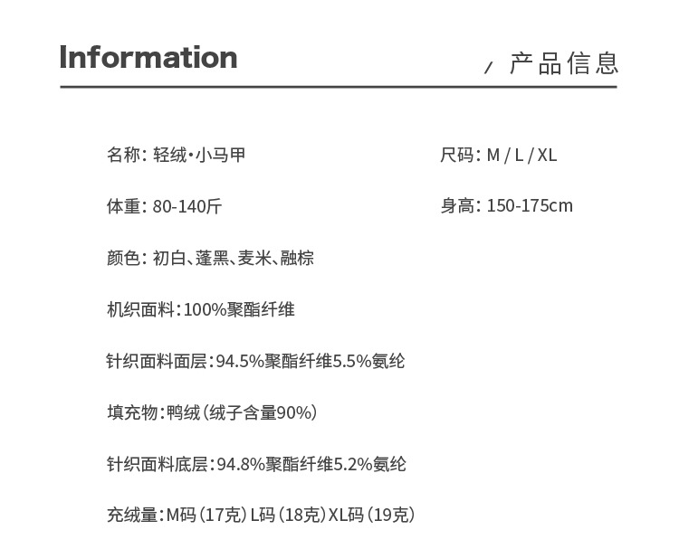 馥迦通勤百搭保暖轻量鸭绒马甲