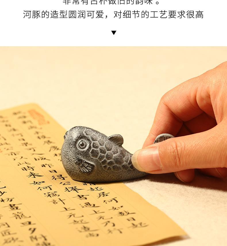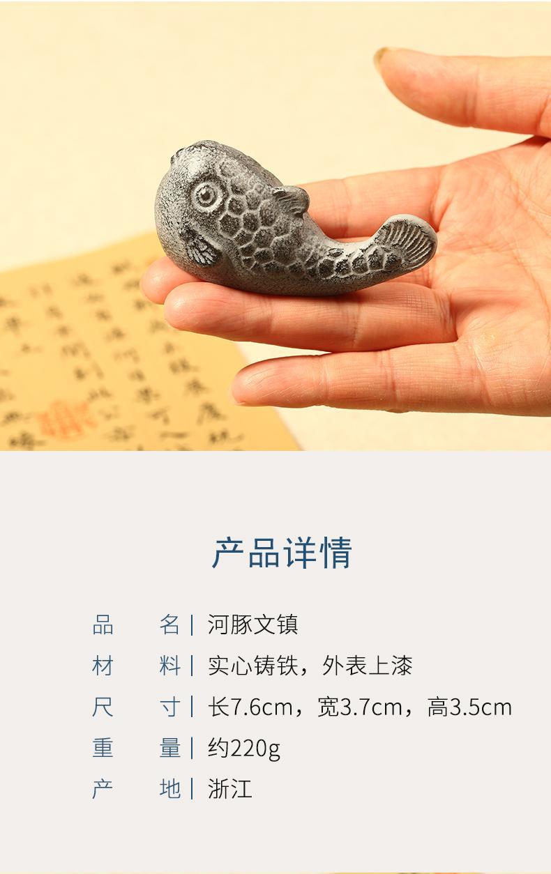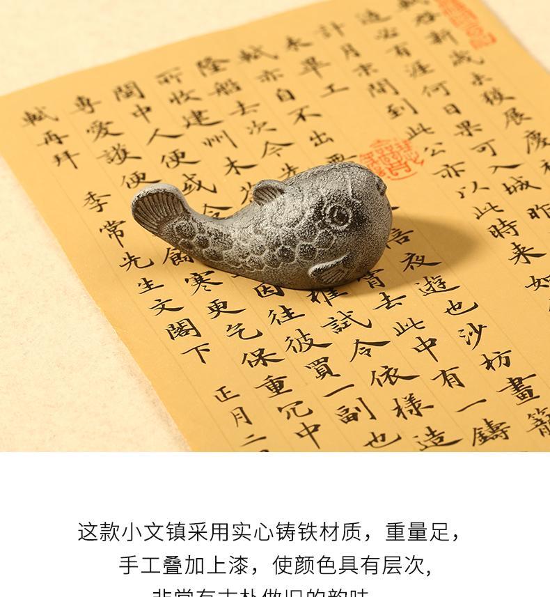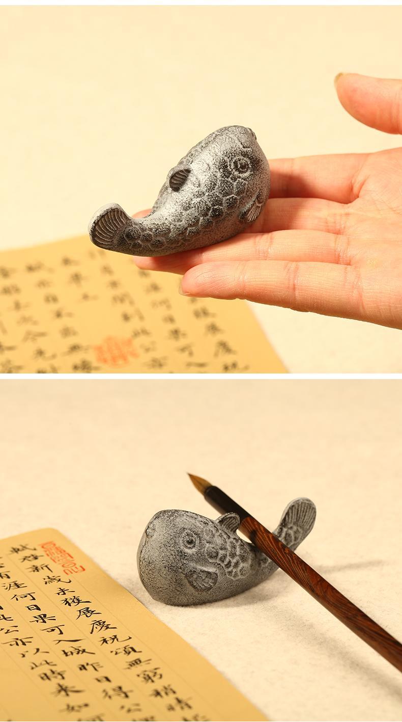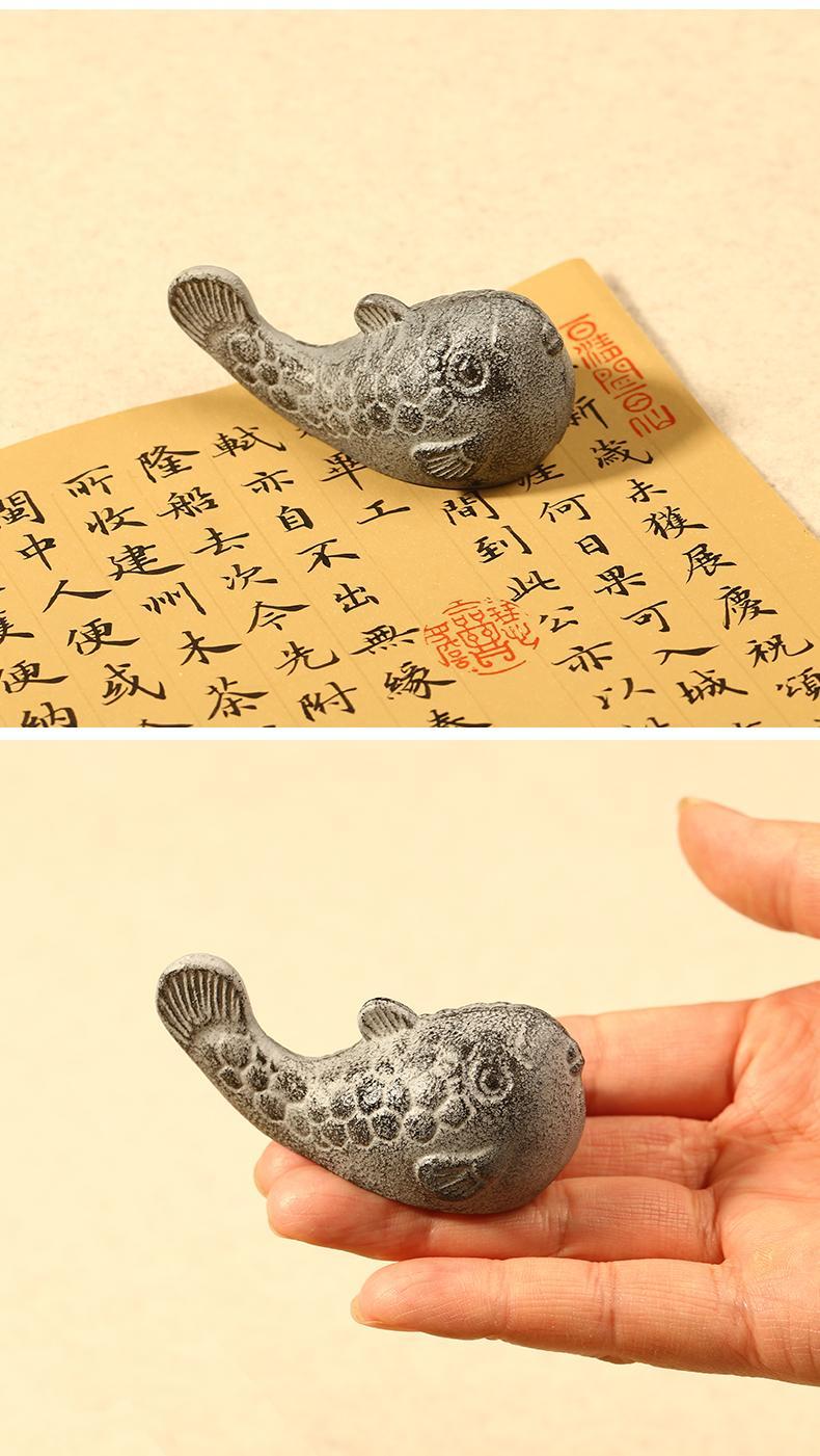 创意铸铁河豚文镇金属学生小摆件笔搁笔置镇纸镇尺文房四宝