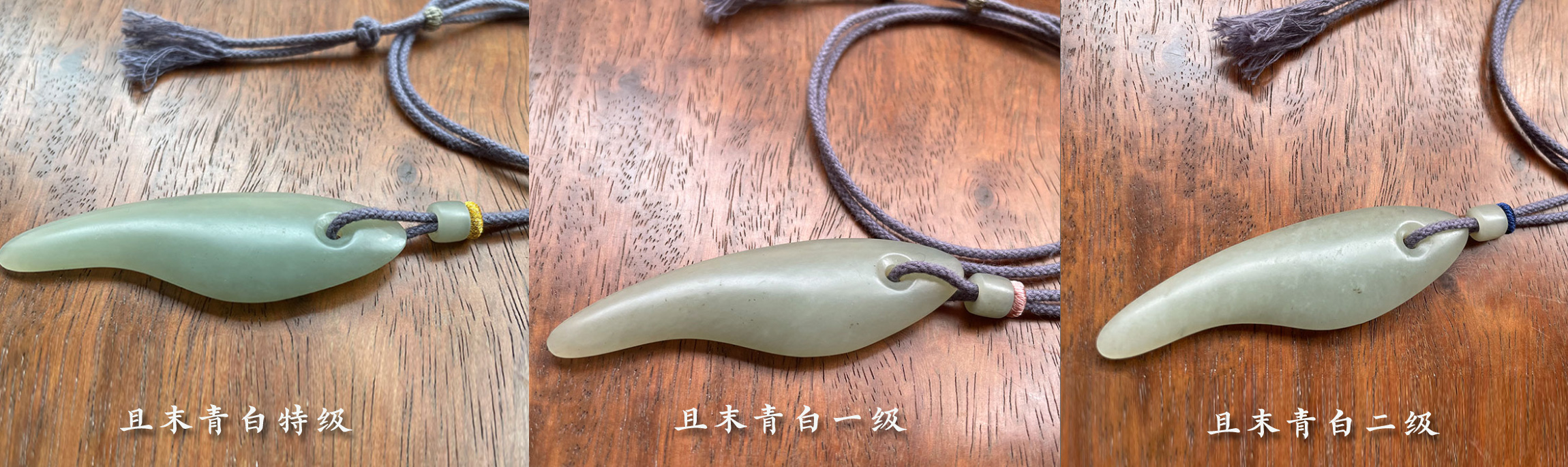 ▲ 手机自然光下拍的碧玉小鱼,从上到下分别是:特级、一级、二级。
