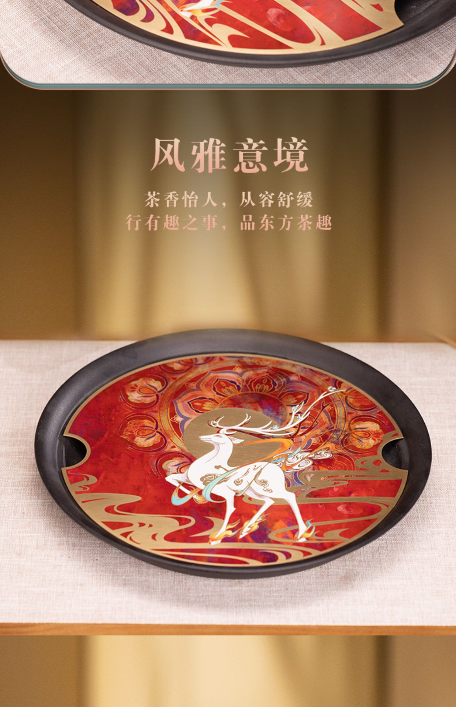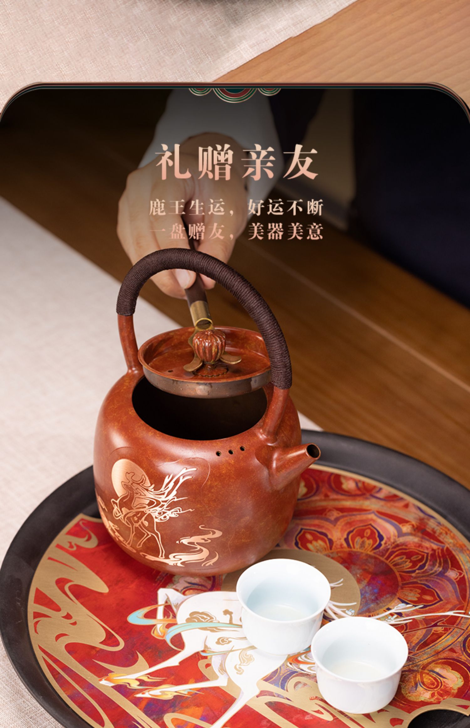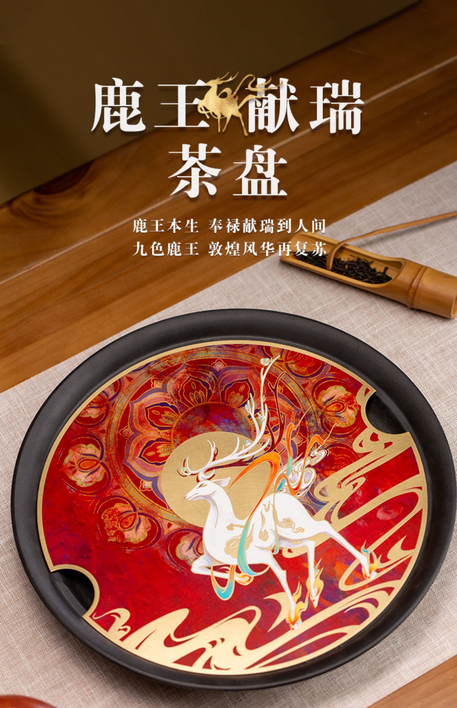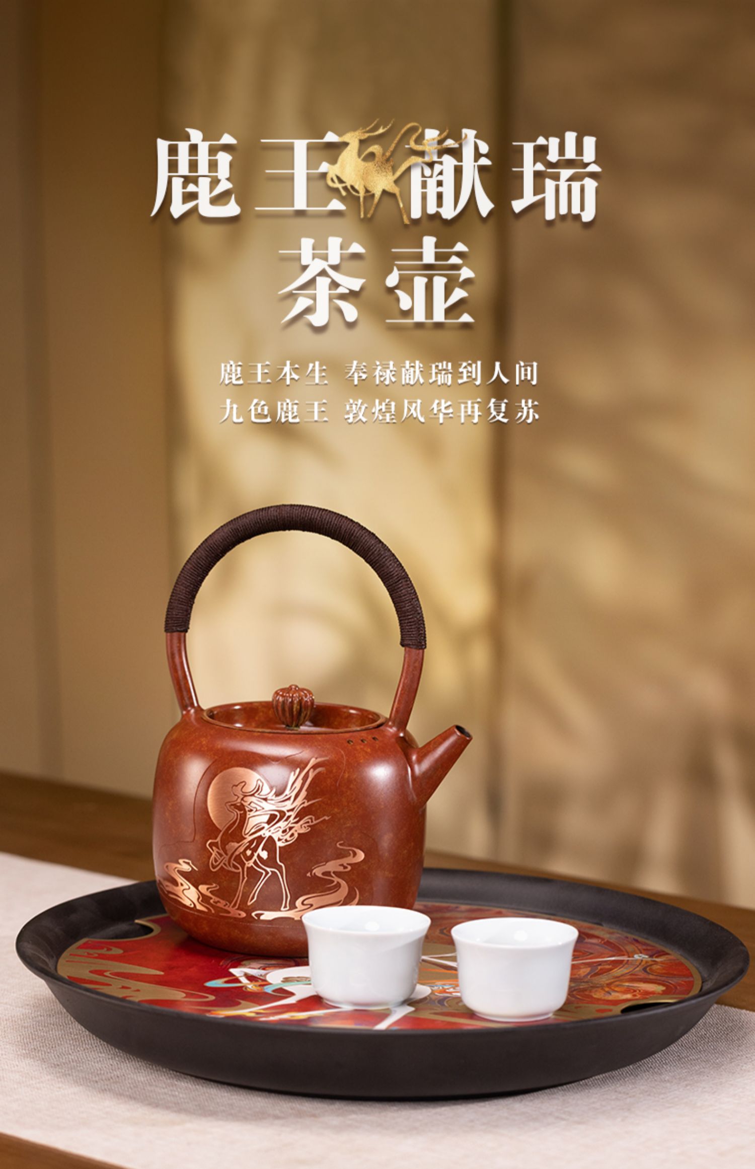 朱炳仁丨鹿王献瑞茶壶 鹿王献瑞铜茶盘 鹿王本生图彩绘 造型灵动