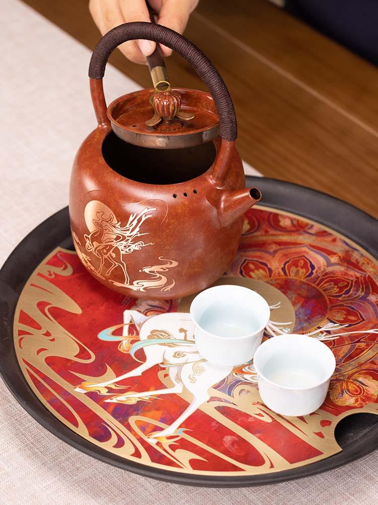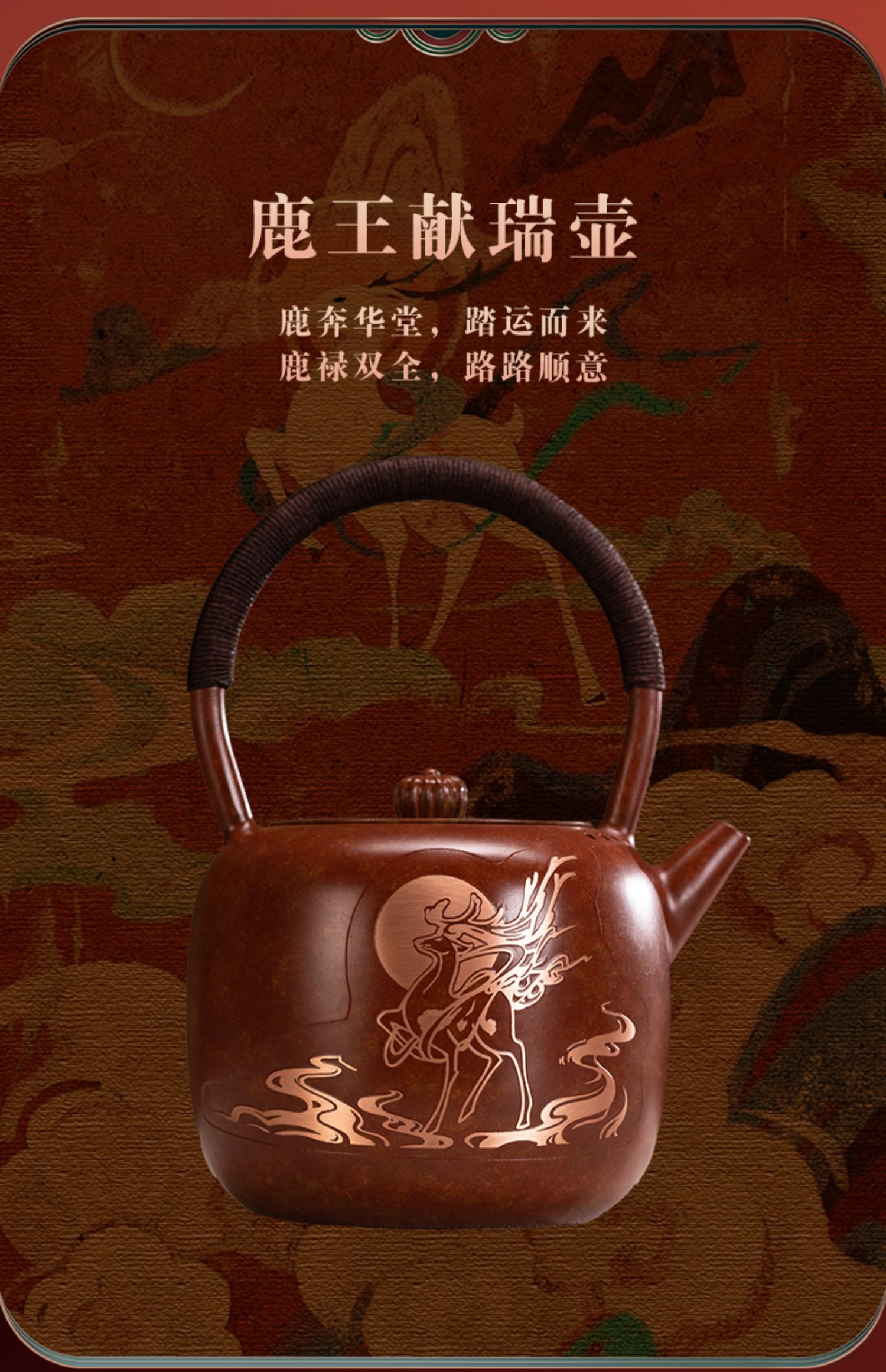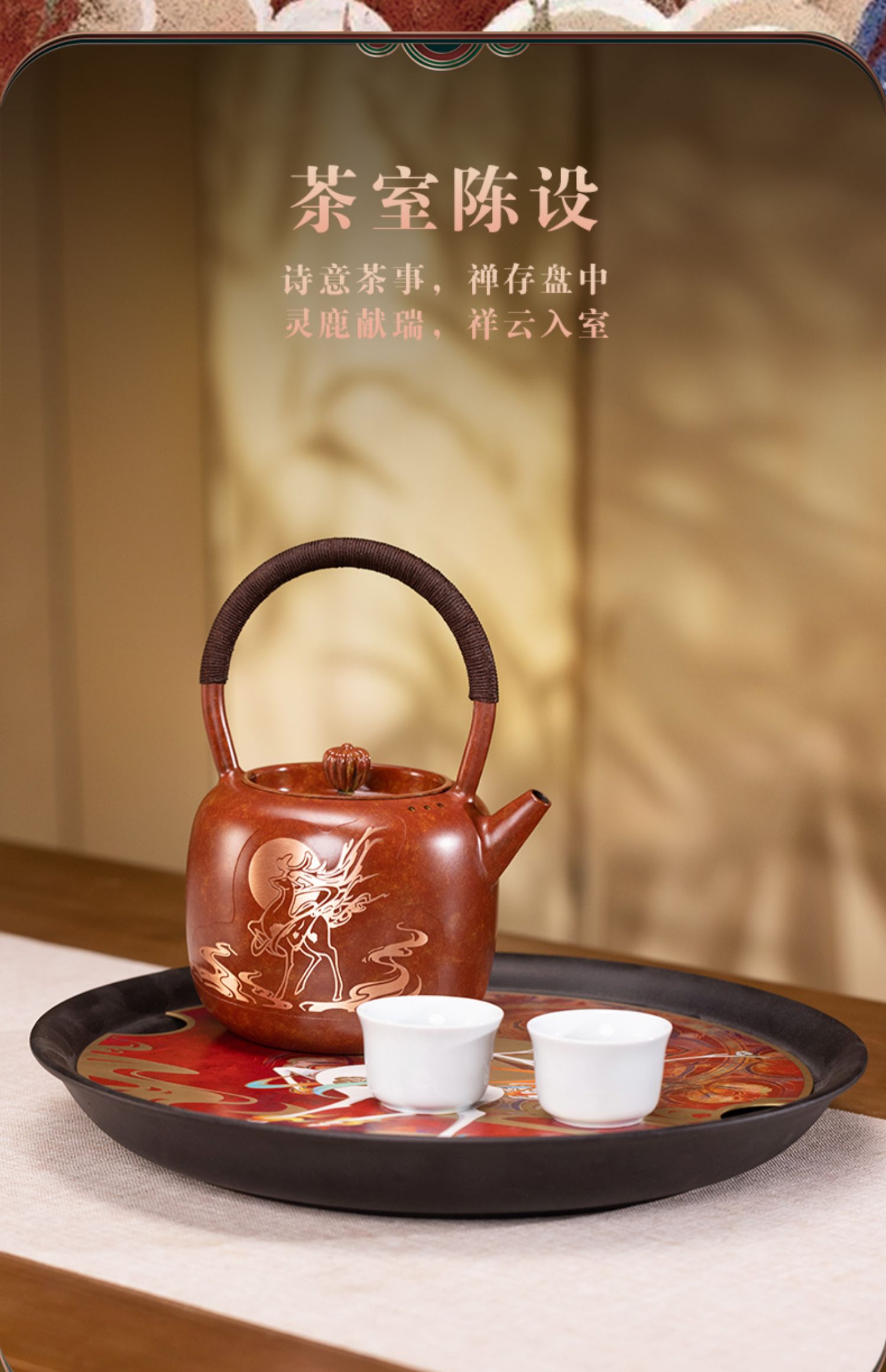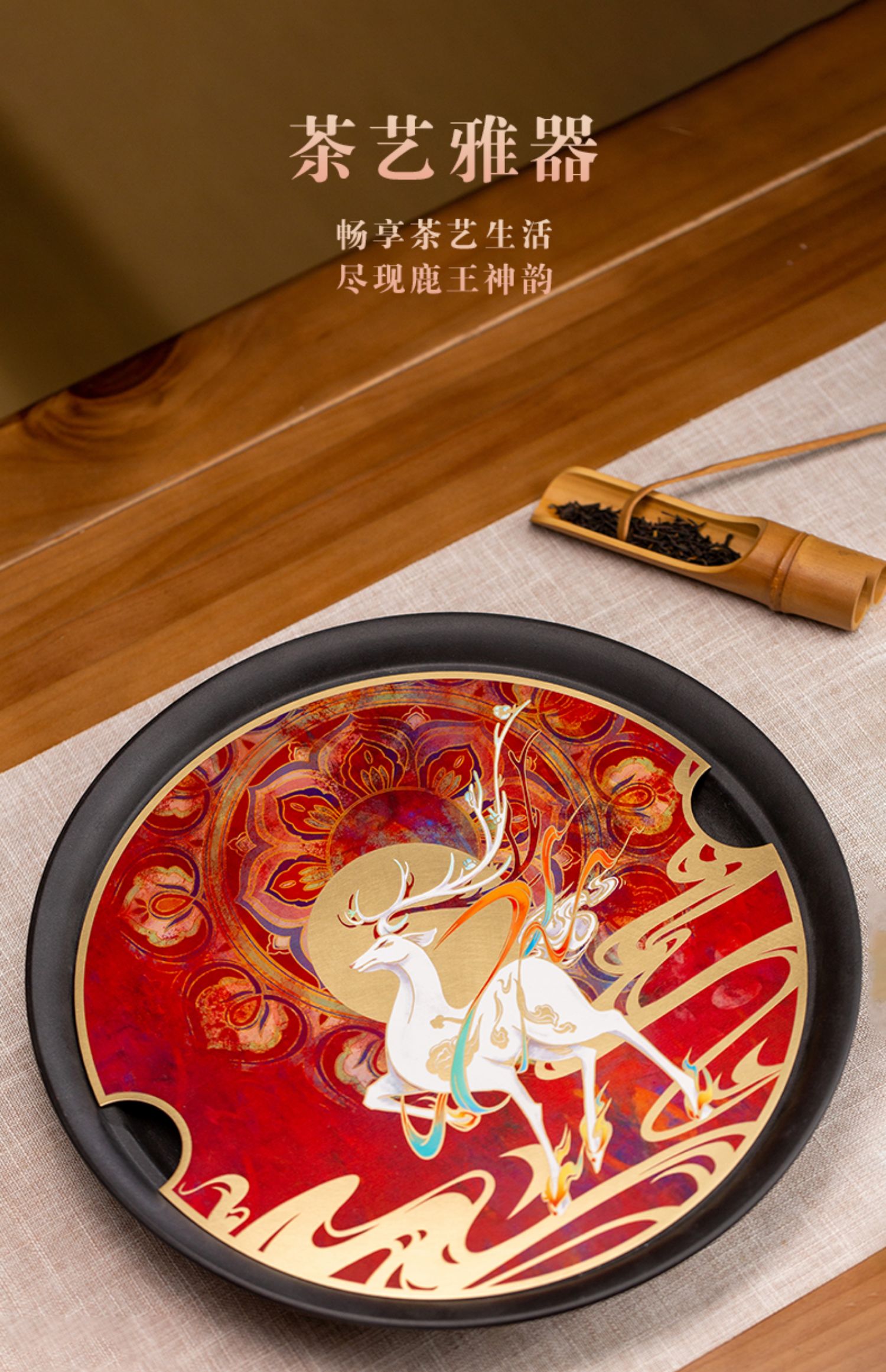 朱炳仁丨鹿王献瑞茶壶 鹿王献瑞铜茶盘 鹿王本生图彩绘 造型灵动