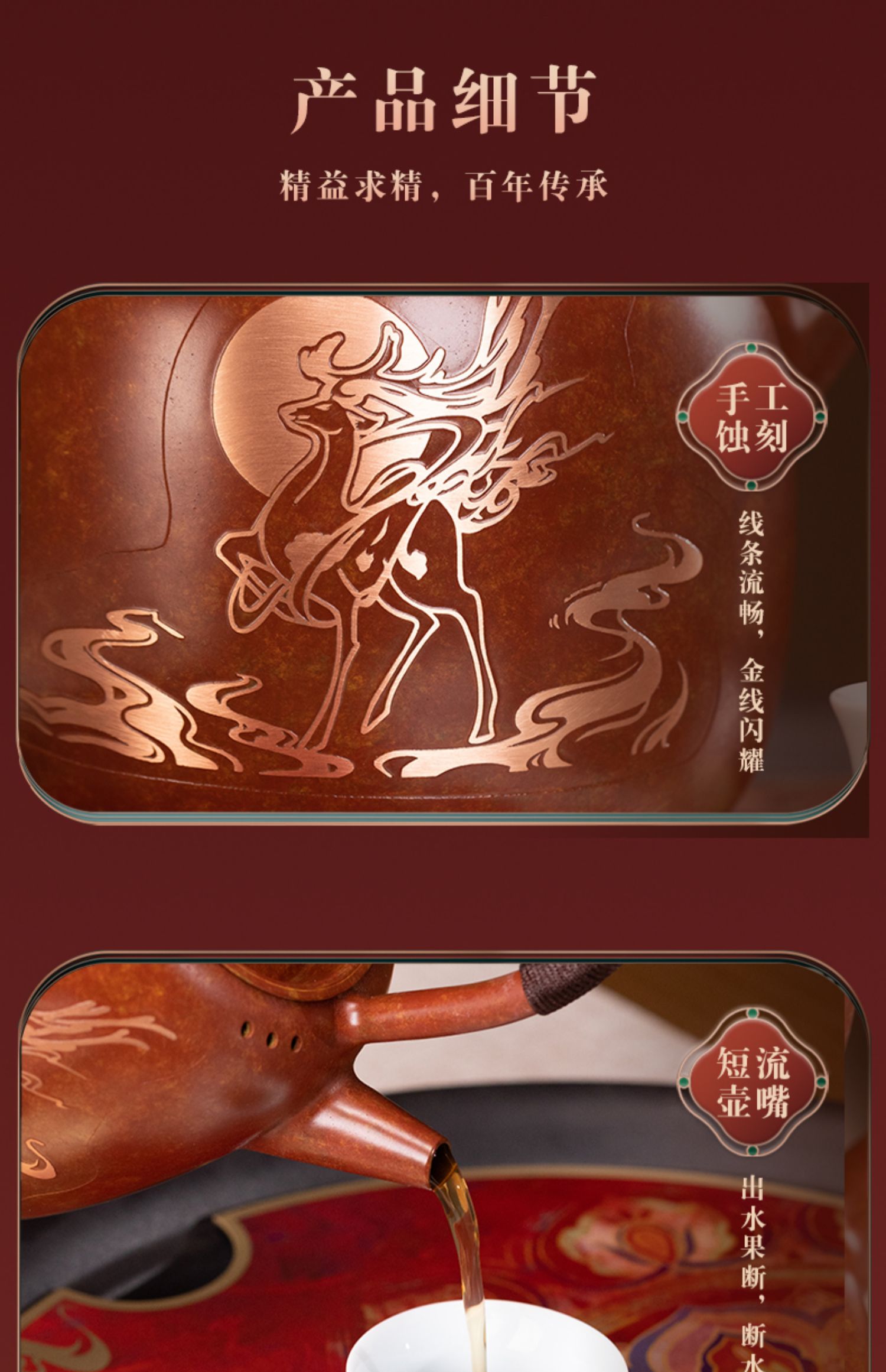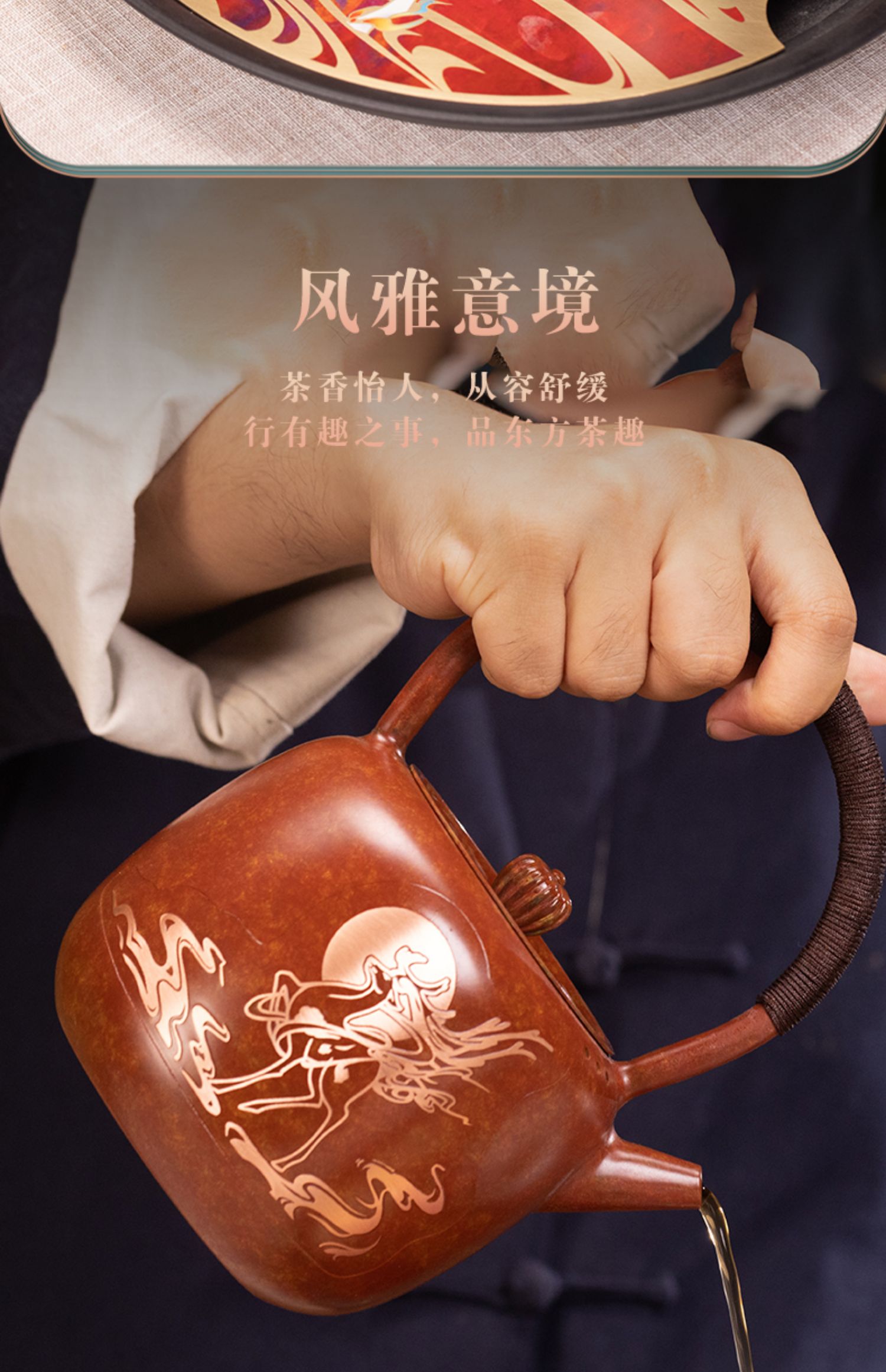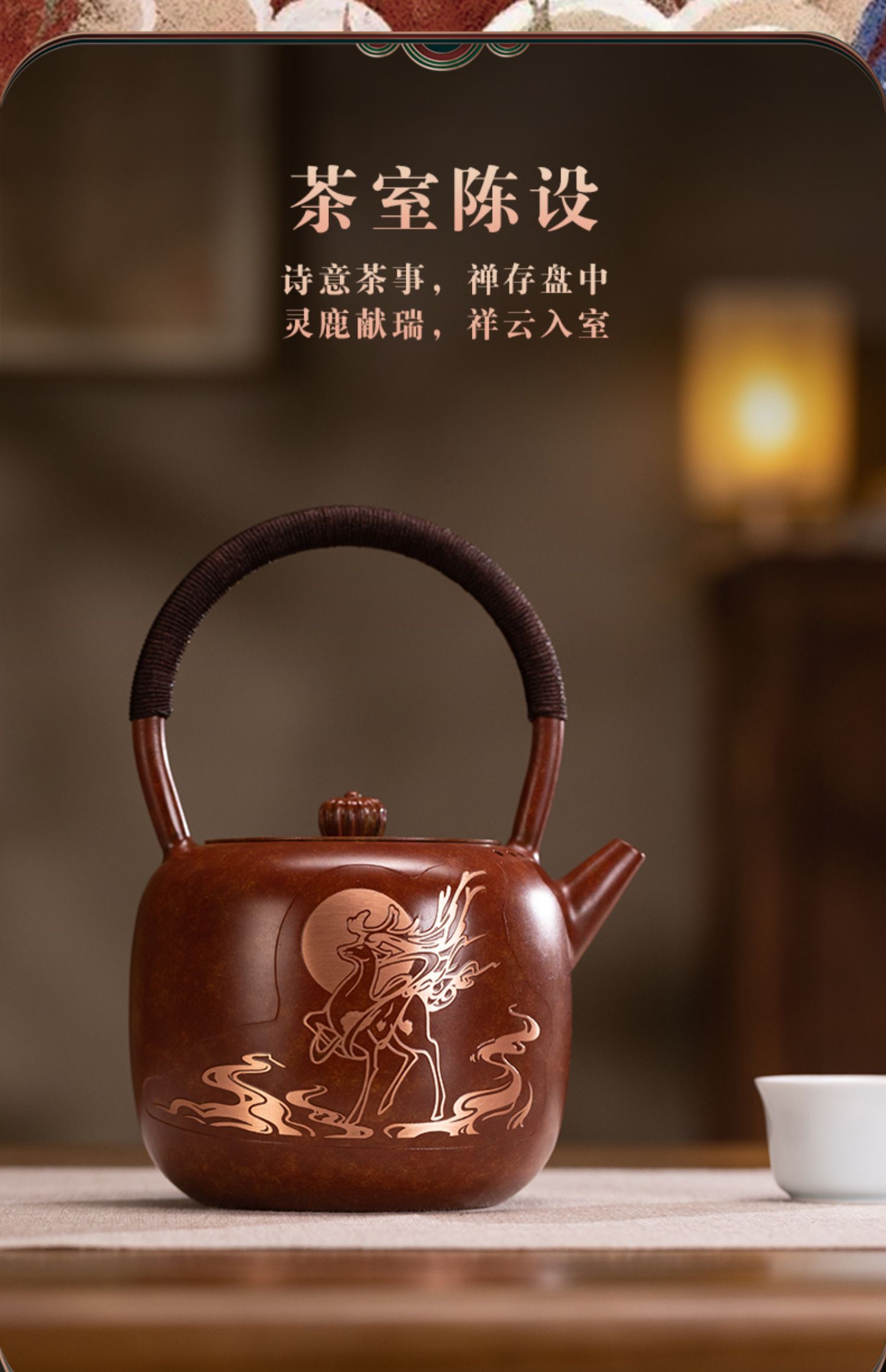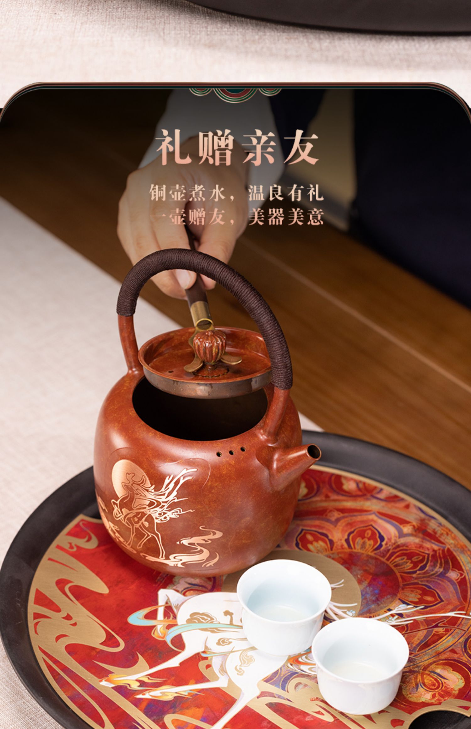 朱炳仁丨鹿王献瑞茶壶 鹿王献瑞铜茶盘 鹿王本生图彩绘 造型灵动