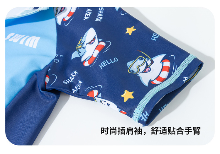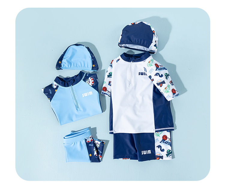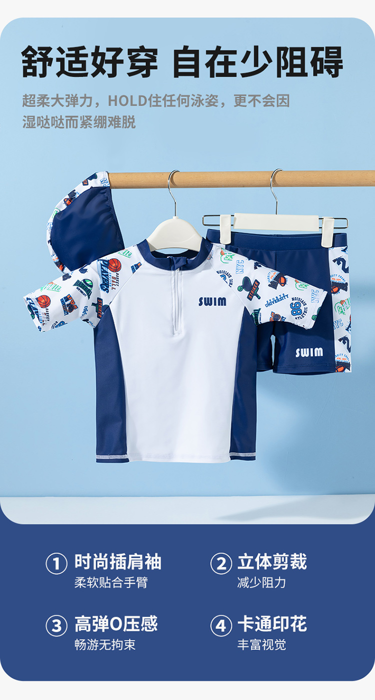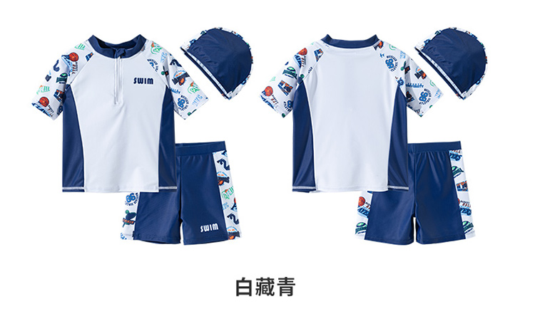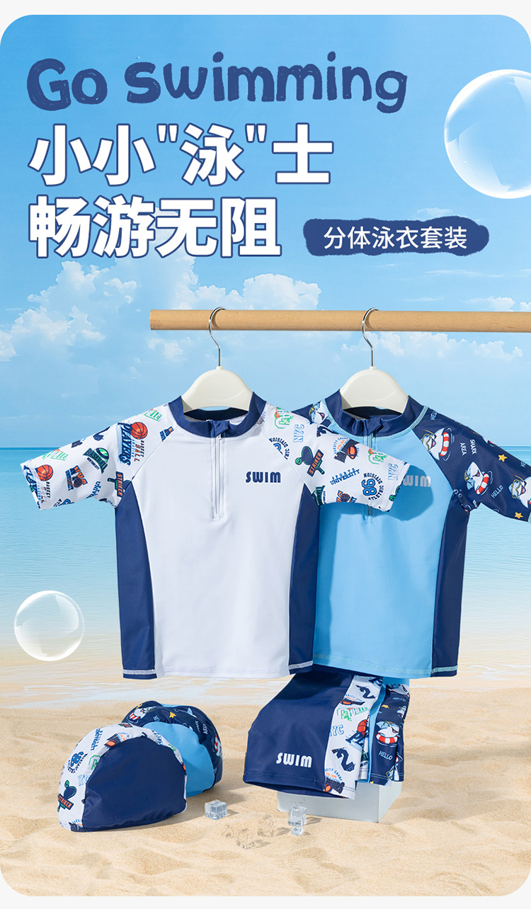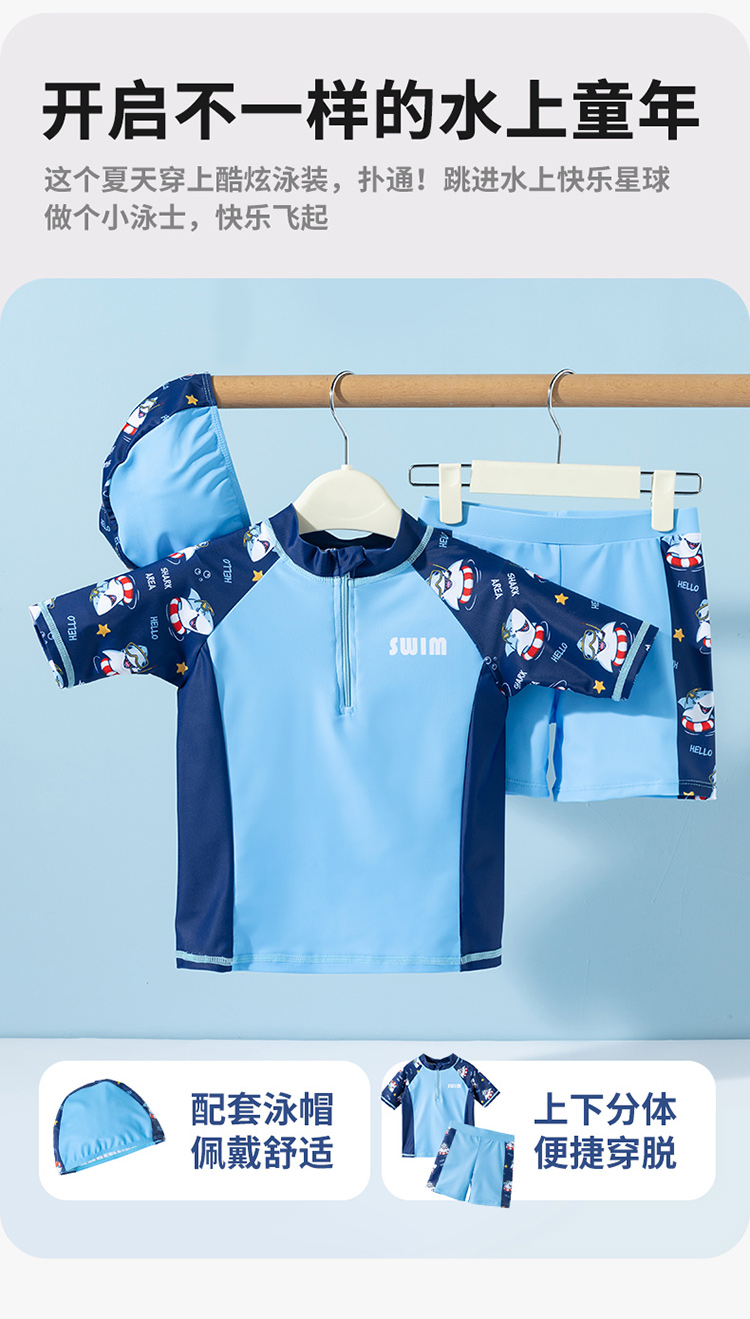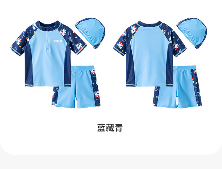 贝贝怡儿童泳衣套装分体男童中大童夏季新款男孩游泳衣泳帽整套ZB2EP007