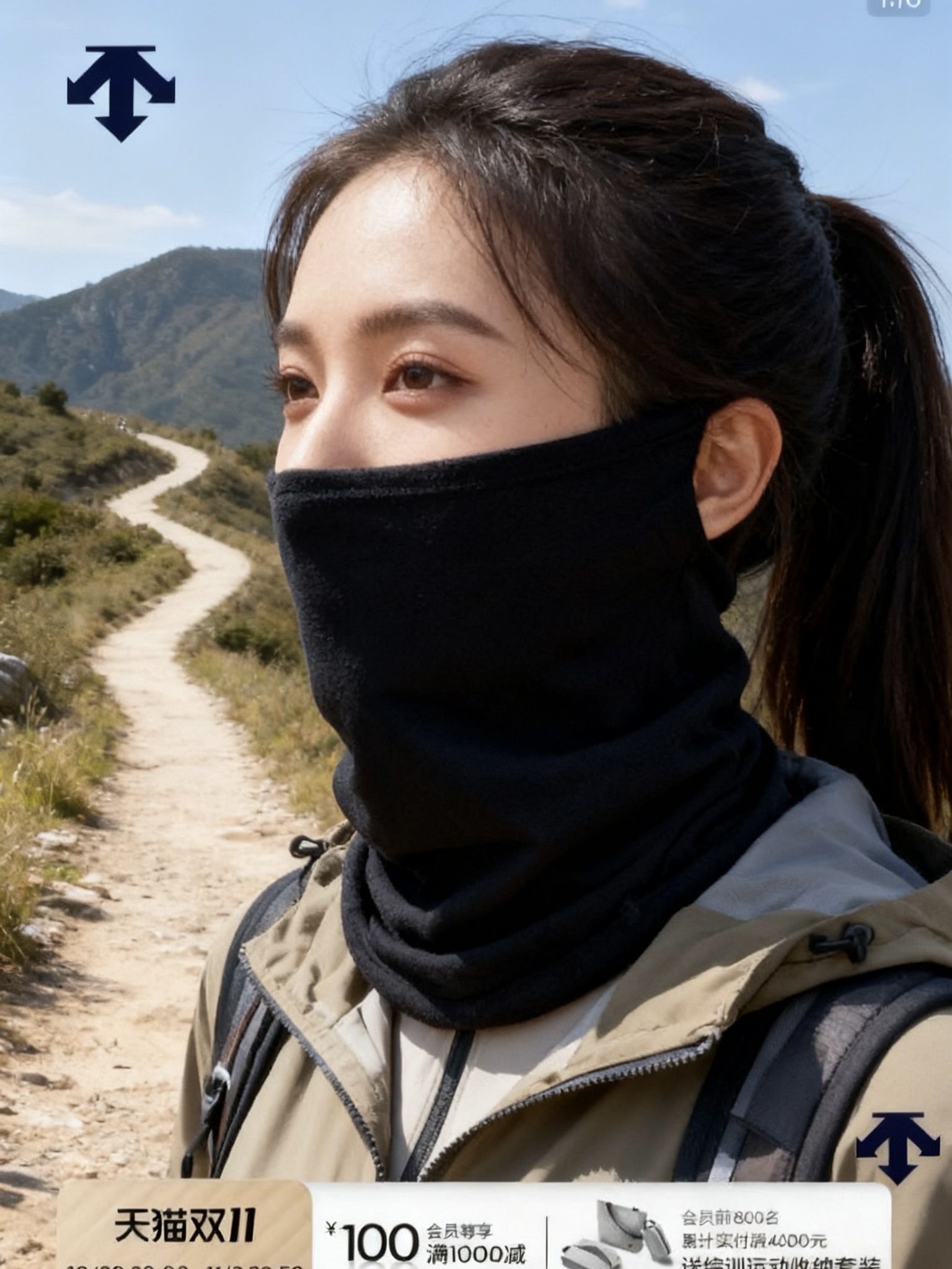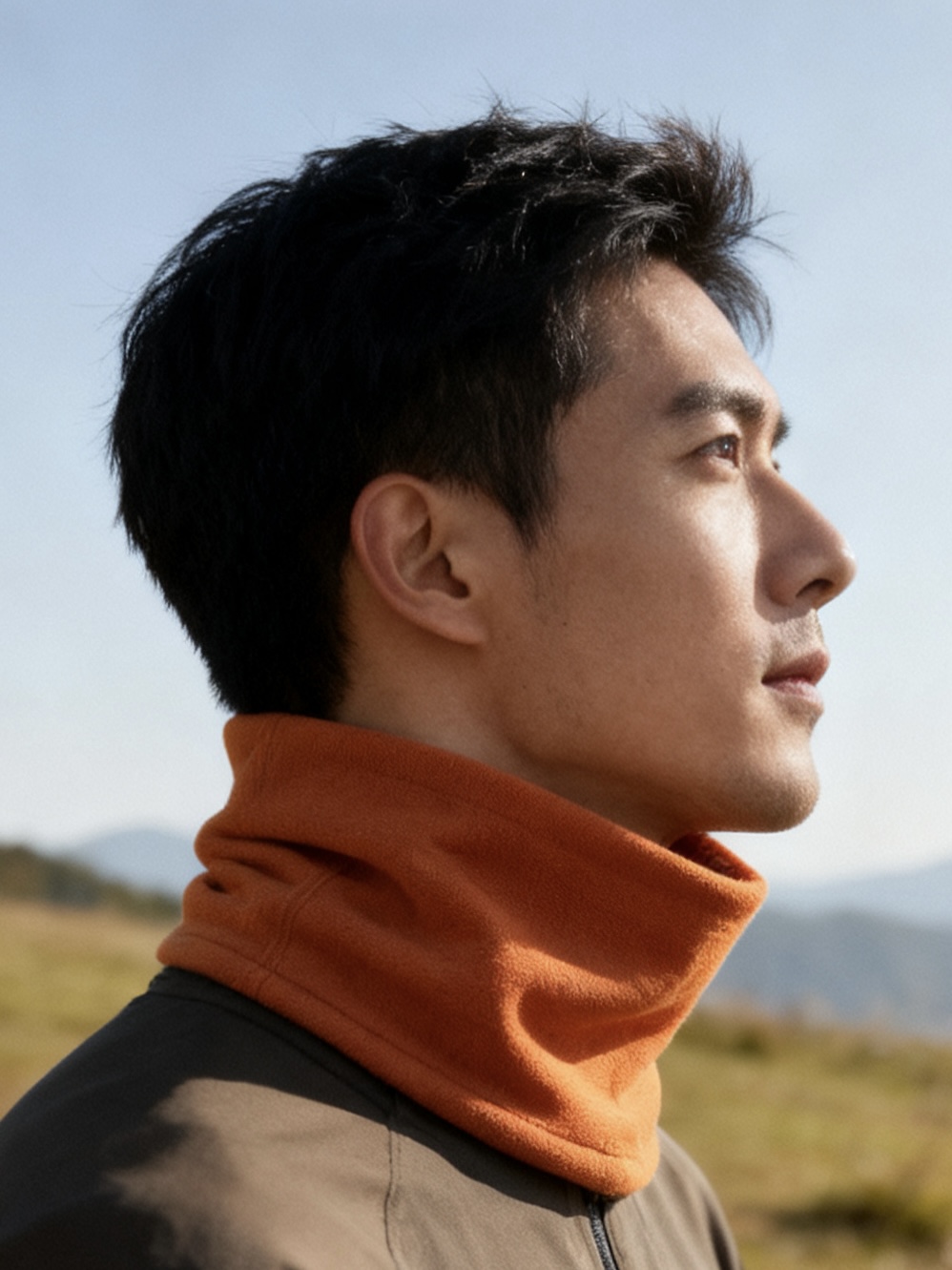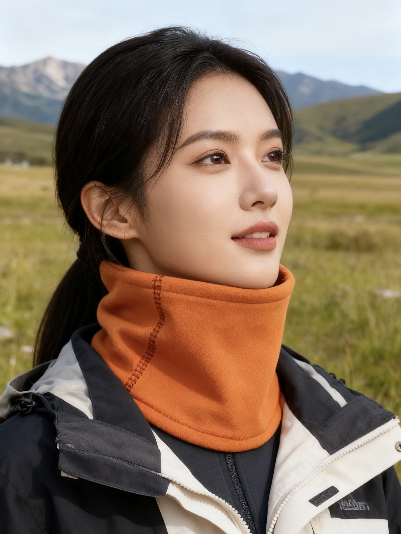 自带硅胶小标、软弹贴肤的围脖,直接把“防风锁温”焊在身上——轻若无物却能裹紧暖意,拉起来还能当半脸面罩挡雪遮尘。