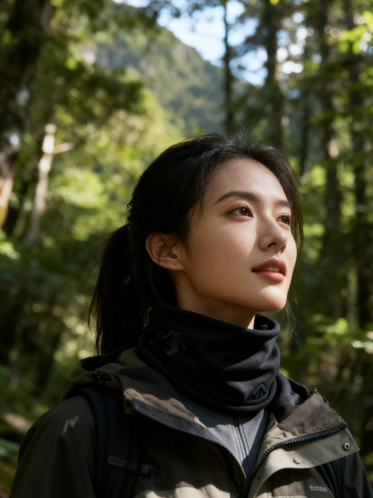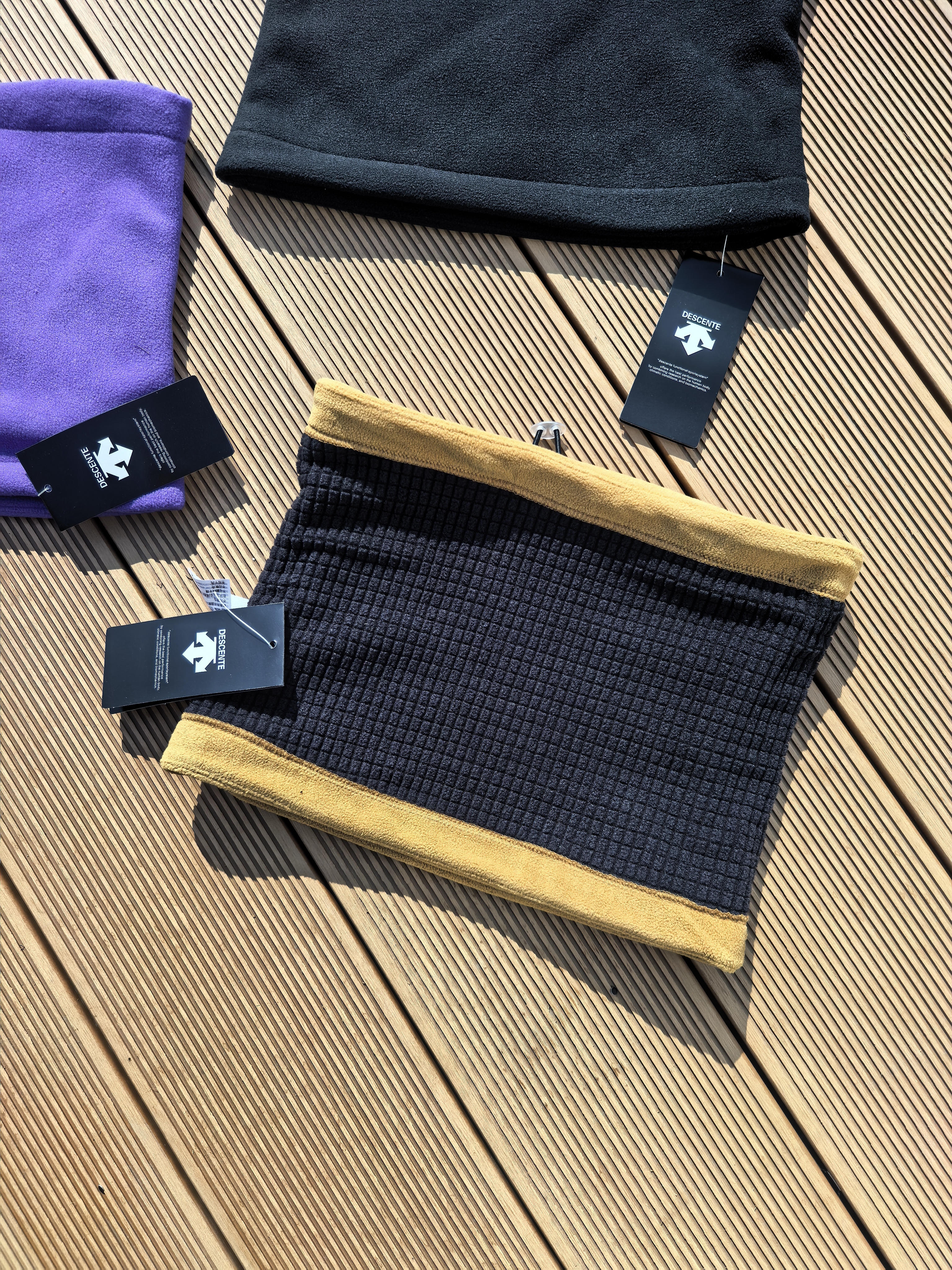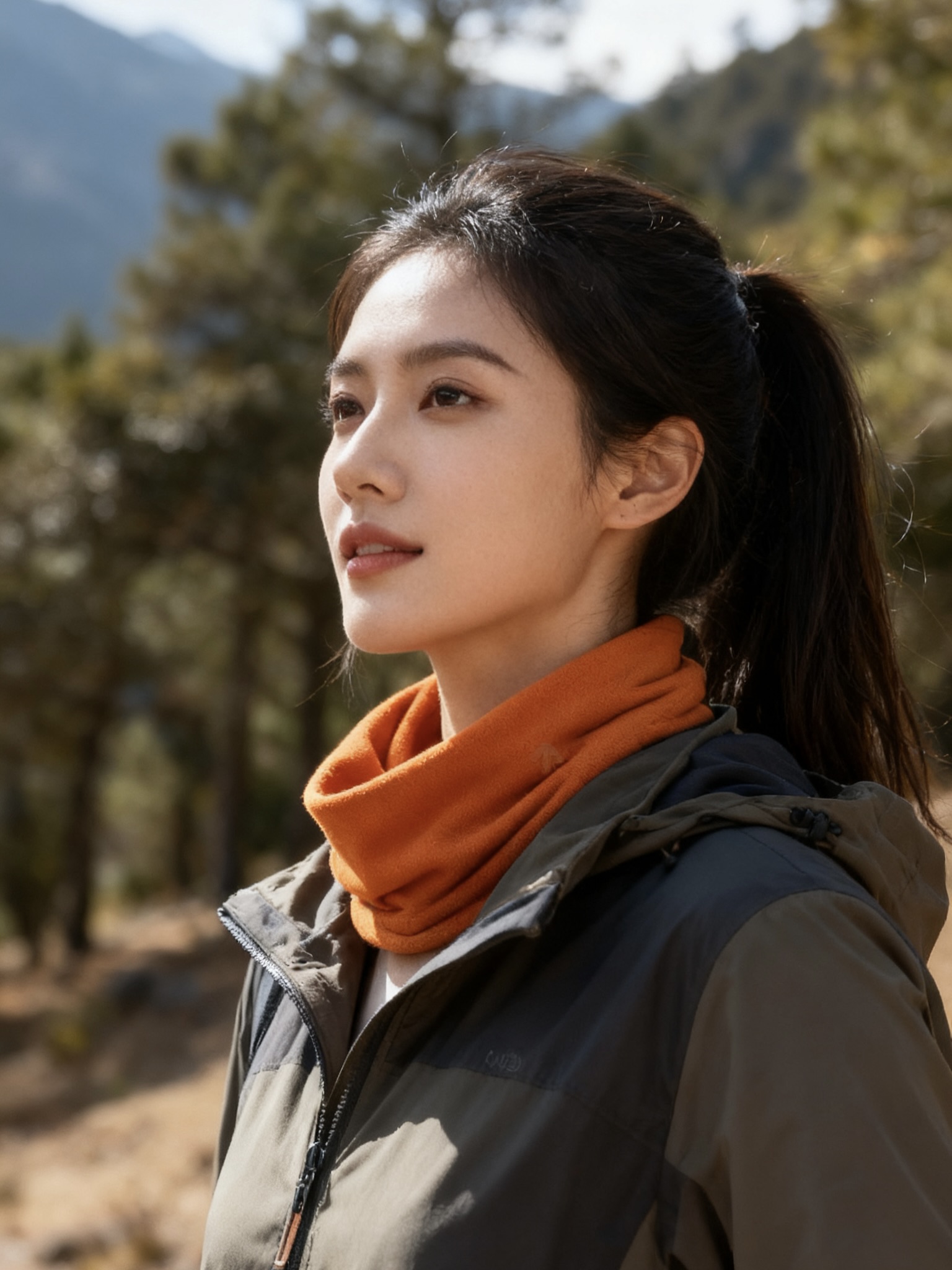 自带硅胶小标、软弹贴肤的围脖,直接把“防风锁温”焊在身上——轻若无物却能裹紧暖意,拉起来还能当半脸面罩挡雪遮尘。