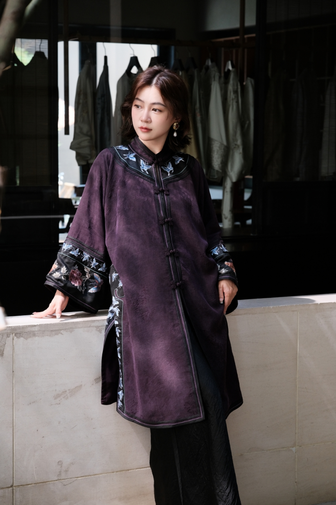 盛唐牡丹盛奢系列 | 真丝香云纱三蓝绣外套